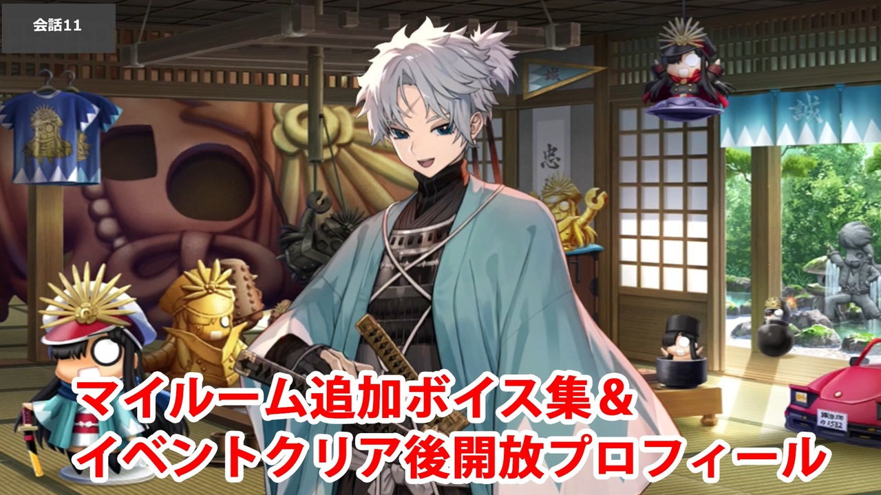 期間限定イベント「幕末チャンバラ神話 ぐだぐだ新選組・ジ・エンド REVENGE OF MAKOTO」のメインクエストクリア後に追加される<br>藤堂平助(CV:田丸篤志)のマイルーム会話ボイスと開放されるプロフィールのまとめです。<br>イベントクリア後に追加される土方歳三(CV:星野貴紀)、原田左之助(CV:斉藤壮馬)、河上彦斎(CV:白石晴香)からの特殊会話も収録しています。<br><br>YouTube版はこちら<br><a href="https://www.youtube.com/watch?v=5OGQrNh1cSU" target="_blank" rel="noopener nofollow">https://www.youtube.com/watch?v=5OGQrNh1cSU</a><br><br />投稿済ボイス集→<a href="https://www.nicovideo.jp/mylist/57873980" target="_blank" rel="noopener">mylist/57873980</a>、<a href="https://www.nicovideo.jp/mylist/68037946" target="_blank" rel="noopener">mylist/68037946</a>、<a href="https://www.nicovideo.jp/mylist/76708013" target="_blank" rel="noopener">mylist/76708013</a>