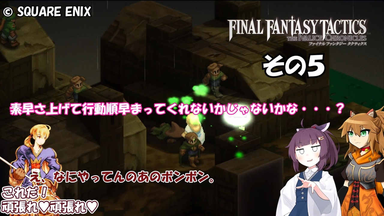 この動画はスチーム版ファイナルファンタジータクティクス イヴァリースクロニクルズの実況動画です。<br><br>難易度:タクティカル<br><br>※そのうち縛る縛り内容。<br>①ラムザくん 見習い戦士固定<br>②ネコ耳 斧or両手武器装備(現在不可能)<br>③ドラムカン 弓・ボウガン・銃装備<br>④きりたんです 武器攻撃禁止<br>⑤あいちゃん 盾装備orサムライ<br><br><a href="https://www.nicovideo.jp/watch/sm45471153" class="watch">sm45471153</a> ← 前 次 → <a href="https://www.nicovideo.jp/watch/sm45475501" class="watch">sm45475501</a><br>マイリスト →<a href="https://www.nicovideo.jp/mylist/72149077" target="_blank" rel="noopener">mylist/72149077</a><br>その1リスト →<a href="https://www.nicovideo.jp/mylist/58364125" target="_blank" rel="noopener">mylist/58364125</a> <br><br>VOICEVOX:春日部つむぎ(ネコ耳) 玄野武宏(ラムザ・ベオルブ)<br> 青山龍星(ドラムカン) 東北きりたん(東北きりたん)あいちゃん(中国うさぎ)<br>Voiceroid:東北きりたん(立ち絵:このりEX様作 東北きりたん立ち絵素材5 <a href="https://seiga.nicovideo.jp/seiga/im10819054" target="_blank" rel="noopener">im10819054</a>)<br><br>© SQUARE ENIX<br>