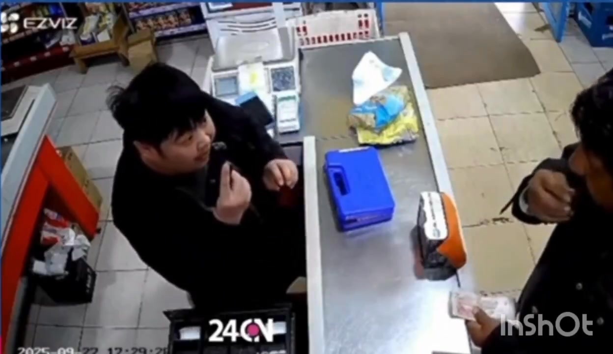 ホモと見る店員に銃を向けられて奪った物を返す強盗