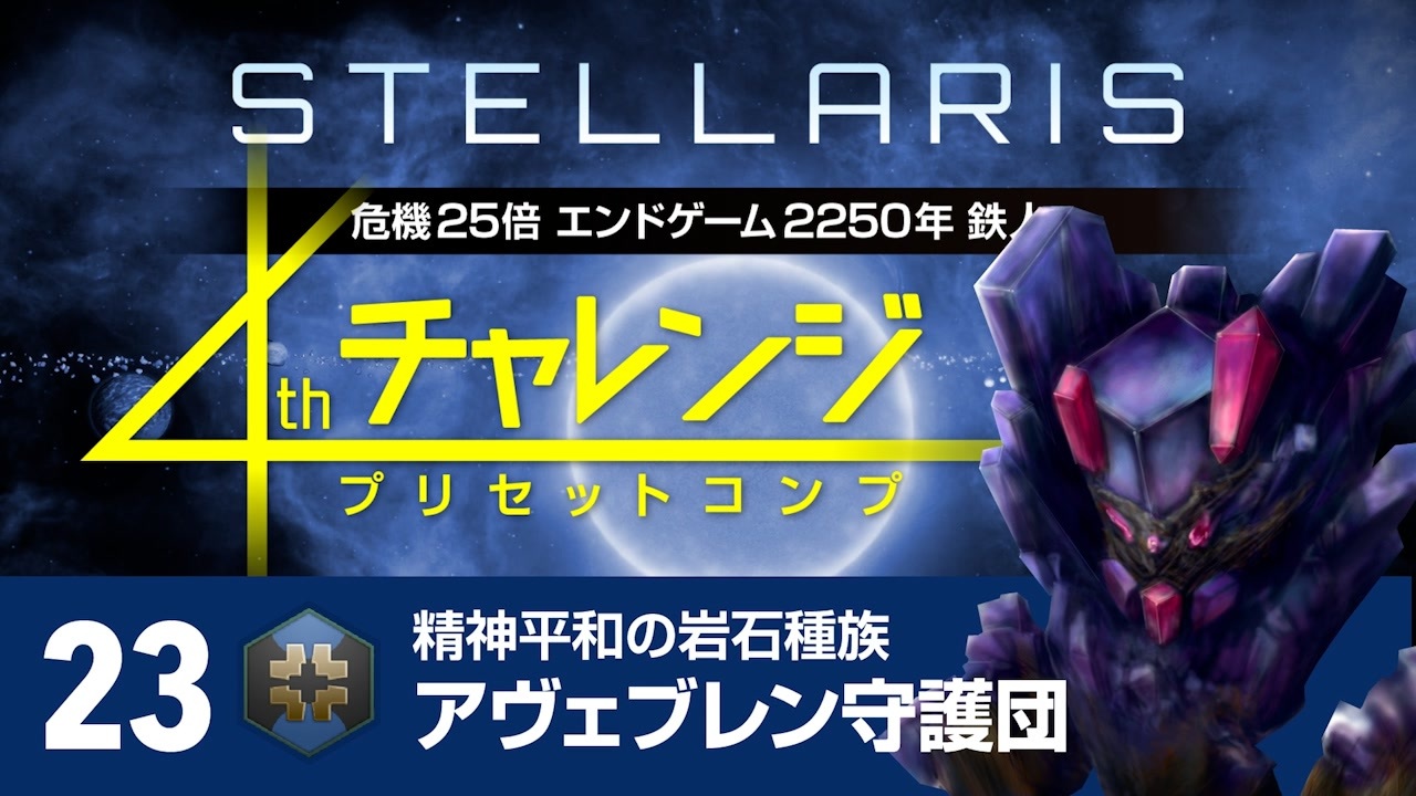 プリセット帝国で危機25倍エンドゲーム2250年鉄人モードに挑むシリーズのハイライト編集版です。<br>「いいね」にこのプリセット帝国のおすすめ度を入れています。<br><br>☆無編集版<br><a href="https://www.youtube.com/playlist?list=PLKTCcuX4WBFmBRihJFSE5YMG_lHh6_GLo" target="_blank" rel="noopener nofollow">https://www.youtube.com/playlist?list=PLKTCcuX4WBFmBRihJFSE5YMG_lHh6_GLo</a><br><br>☆チャレンジの詳細(予告編)<br><a href="https://www.nicovideo.jp/watch/sm39832845" class="watch">sm39832845</a><br><br>☆ゲーム<br>・Stellaris v4.0.22<br><br>☆設定<br>・危機25倍<br>・ミッドゲーム2225年<br>・エンドゲーム2250年<br>・難易度 元帥<br>・鉄人モード<br>・その他はデフォルト<br><br>☆DLC<br>・バイオジェネシスまで全部<br><br>☆MOD<br>・[4.0] Compact UI Topbar Expanded<br>・Improved Topbar - Extended<br>・Tech Tiers Revealed<br><br>☆ナレーション<br>四国めたん(VOICEVOX)<br /><br><span style="color: #262626;">1stチャレンジ(国際地球連合編)⇒ </span><span style="color: #0000ff;"><a href="https://www.nicovideo.jp/series/157544" target="_blank" rel="noopener">series/157544</a></span><br><span style="color: #262626;">2ndチャレンジ(人類共同体編)⇒ </span><span style="color: #0000ff;"><a href="https://www.nicovideo.jp/series/182469" target="_blank" rel="noopener">series/182469</a></span><br><span style="color: #262626;">3rdチャレンジ(ロク機械主義国編)⇒ </span><span style="color: #0000ff;"><a href="https://www.nicovideo.jp/series/207056" target="_blank" rel="noopener">series/207056</a></span><br><span style="color: #262626;">4thチャレンジ(プリセットコンプ)⇒ </span><span style="color: #0000ff;"><a href="https://www.nicovideo.jp/series/287612" target="_blank" rel="noopener">series/287612</a></span><br><span style="color: #262626;">Stellarisマルチプレイ ⇒ </span><span style="color: #0000ff;"><a href="https://www.nicovideo.jp/series/367123" target="_blank" rel="noopener">series/367123</a></span><br><span style="color: #262626;">Stellaris検証動画 ⇒ </span><span style="color: #0000ff;"><a href="https://www.nicovideo.jp/series/202576" target="_blank" rel="noopener">series/202576</a></span><br><span style="color: #262626;">Stellaris妄想動画 ⇒ </span><span style="color: #0000ff;"><a href="https://www.nicovideo.jp/series/310298" target="_blank" rel="noopener">series/310298</a></span><br>Stellaris1分動画祭 ⇒ <a href="https://www.nicovideo.jp/series/404730" target="_blank" rel="noopener">series/404730</a><br><br><br><a target="_blank" href="https://qa.nicovideo.jp/faq/show/19424?site_domain=default" style="font-size: 13px;color: #657586; text-decoration: underline; line-height: 1.4">この動画は投稿者によって修正されました</a>