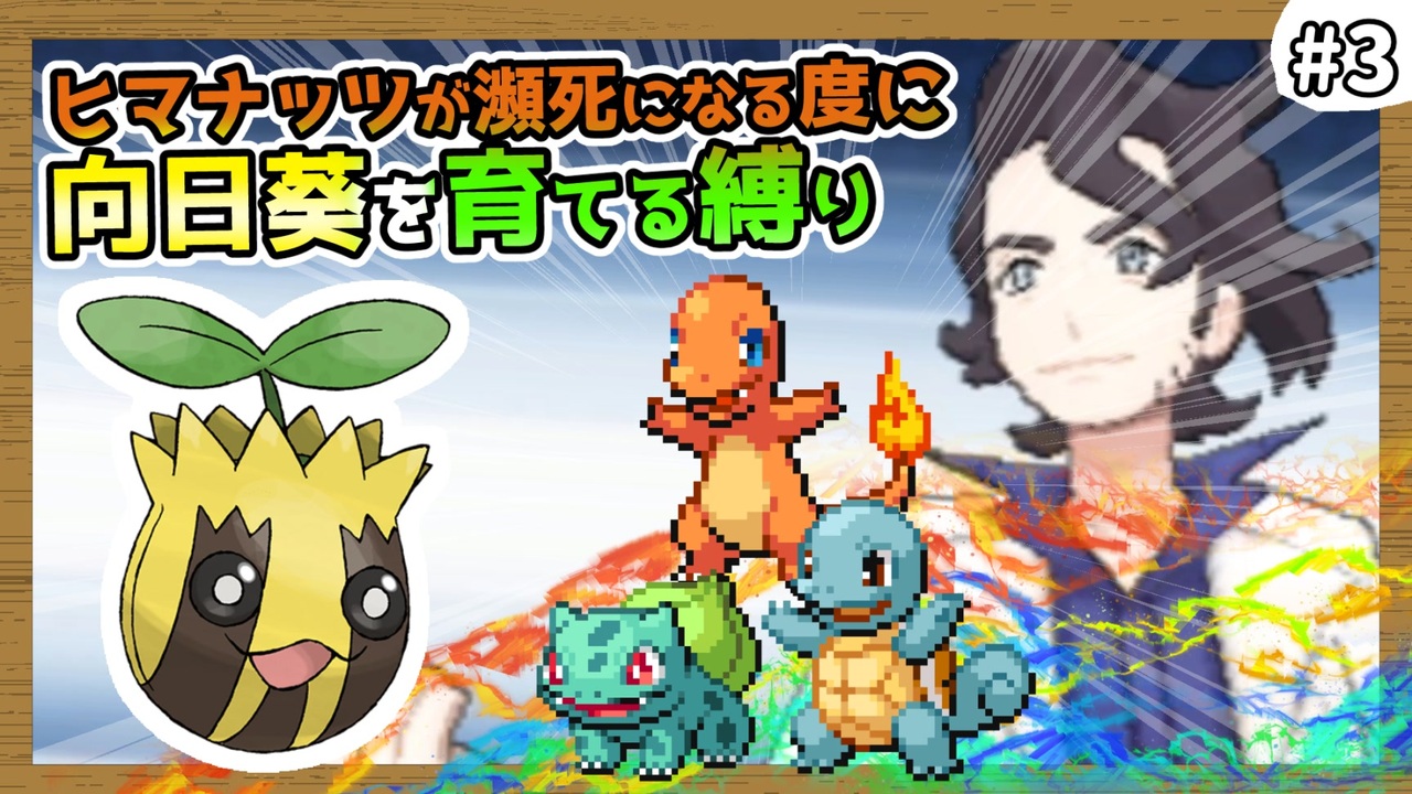 ノーカット版→<a href="https://www.youtube.com/playlist?list=PL7iDsjvFHlcaVw0j_TTMgtQu9qrq4hMLh" target="_blank" rel="noopener nofollow">https://www.youtube.com/playlist?list=PL7iDsjvFHlcaVw0j_TTMgtQu9qrq4hMLh</a><br><br>前→<a href="https://www.nicovideo.jp/watch/sm45452211" class="watch">sm45452211</a><br>次→<a href="https://www.nicovideo.jp/watch/sm45495429" class="watch">sm45495429</a><br><br> ーーーーーーーーーーーーーーーーーーーーーーーーー<br>(目標)<br>・ゲーム内:チャンピオンになる<br>・現実:大きな向日葵を咲かせる<br><br>(ルール)<br>・ヒマナッツが瀕死になったら、現実で向日葵の種を植える<br>・現実で向日葵が発芽したら、戦闘に復帰<br>・現実で向日葵が枯れたら、永久に使用不可<br>・向日葵が咲いたらキマワリに進化させることができる<br><br>(レベル制限)<br>・発芽後のポケモンは、現実の草丈よりもレベルを上げてはいけない(1㎝=1レベルで計測)<br>《例》現実の草丈23㎝=Lv23まで使用可<br><br>※無敗の場合はレベル制限無し<br><br>(新規ヒマナッツ追加条件)<br>・ジムバッジをGETし時<br>・新たに向日葵が発芽したとき<br>・手元に使えるヒマナッツがいなくなった時(アイテムの制限)<br>・HP回復アイテム:おいしい水、木の実、モーモーミルクは使用可<br>・復活アイテム:ふしぎな飴のみ使用可<br>・状態異常回復アイテム:全部OK<br>・わざポイントの回復アイテム:全部OK<br><br>(その他ルール)<br>・意図的なリセット、バグの使用の禁止<br>・ポケモンを大切にする<br>・ヒマナッツ、キマワリ以外の自分のポケモンは戦闘でダメージを与えてはならない<br>・ストーリー進行上必須のイベントやバトルはルールの例外とする<br>・間違って何かのルール違反をしてしまった場合、即座に電源を切る<br>※わざと行うのは禁止