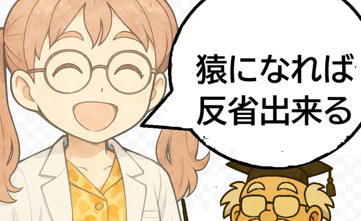 社会的反省は、サルでもできるのではなく、<br>サル’(社会性動物)になれば出来ると言えます。<br>ウキーウキー<br>【補足1】<br>『脳領域の不活性化』について・・・<br>・通常、脳科学文脈に置ける”不活性化”は、「相対的な低下」を示します。<br>「完全停止」を意味す物ではありません。止まっているのは私の脳だけです。<br><br>【補足2】<br>『答えは過去にしかない』について・・・<br>・「創発」と呼ばれる概念が存在しますが、<br>これは「既存記憶の再定義・再構築・再解釈」を行う物であり、<br>発生は認知スタイルと確率依存とされています。<br>人間には「全く新しい創造をする能力」の存在は認められておらず、<br>未知や未発見も、過去情報に既に内在しています。<br>故に「過去資産の組み合わせ発掘」が、人間にとっての答えとなります。<br>※ただし、新種の生物や病気など、物理的新発見は除きます。<br>それらは「創造」でも「創発」でもありません。<br><br><br>前提動画<br>スーパーのレジ待ち - ニコニコ動画<br><a href="https://www.nicovideo.jp/watch/sm45462091" target="_blank" rel="noopener nofollow">https://www.nicovideo.jp/watch/sm45462091</a><br><br><br />クレジット関連<br>Voiced by <a href="https://CoeFont.cloud" target="_blank" rel="noopener nofollow">https://CoeFont.cloud</a><br><a href="https://dova-s.jp/" target="_blank" rel="noopener nofollow">https://dova-s.jp/</a><br>いっしょにおさんぽ。.mp3<br><br><br>