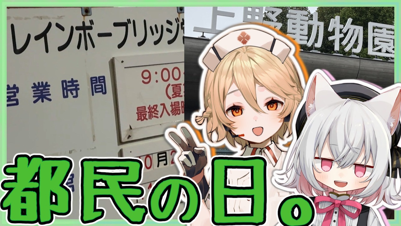 ご視聴ありがとうございます!<br>祝日の動画ですので、ゆる~く制作いたしました。なるべくゆる~く。<br><br>上野動物公園やレインボーブリッジへ行ってきました!<br>都民の日要素は薄いですがご容赦ください。<br>小夜を使ってみたかったので登場させました。とてもかわいいですね!<br><br>~クレジット~<br><br>・VOICEVOX<br>ナースロボ_タイプT<br>小夜/SAYO<br><br>・立ち絵<br>捨て犬A様(<a href="https://seiga.nicovideo.jp/seiga/im11098481" target="_blank" rel="noopener">im11098481</a>)<br>さよなか様(<a href="https://seiga.nicovideo.jp/seiga/im11097974" target="_blank" rel="noopener">im11097974</a>)<br><br>・使用ソフト<br>YMM4<br>~~~<br>投稿者のTwitter:<a href="https://x.com/uikinamo" target="_blank" rel="noopener nofollow">https://x.com/uikinamo</a><br>シリーズ:<a href="https://www.nicovideo.jp/user/81771648/series/530884" target="_blank" rel="noopener nofollow">https://www.nicovideo.jp/user/81771648/series/530884</a>