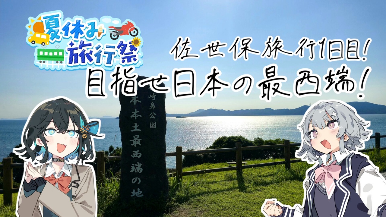 ご視聴ありがとうございます!<br>本動画は湊(みなと)様主催の『夏休み旅行祭』参加作品です!<br><br>遂に始まったレギュラーメンバー総出での一大旅行!<br>その行き先は長崎県佐世保市✨<br>1日目、我々は日本本土最西端の地を目指します……!<br><br>普段以上に賑やかになるであろう3泊4日の旅。その模様を複数パートに分けてお届けします!<br>是非、最終日まで見届けていただけますと幸いです!<br /><br>Twitter(現X):<a href="https://x.com/yakumo_chang" target="_blank" rel="noopener nofollow">https://x.com/yakumo_chang</a>