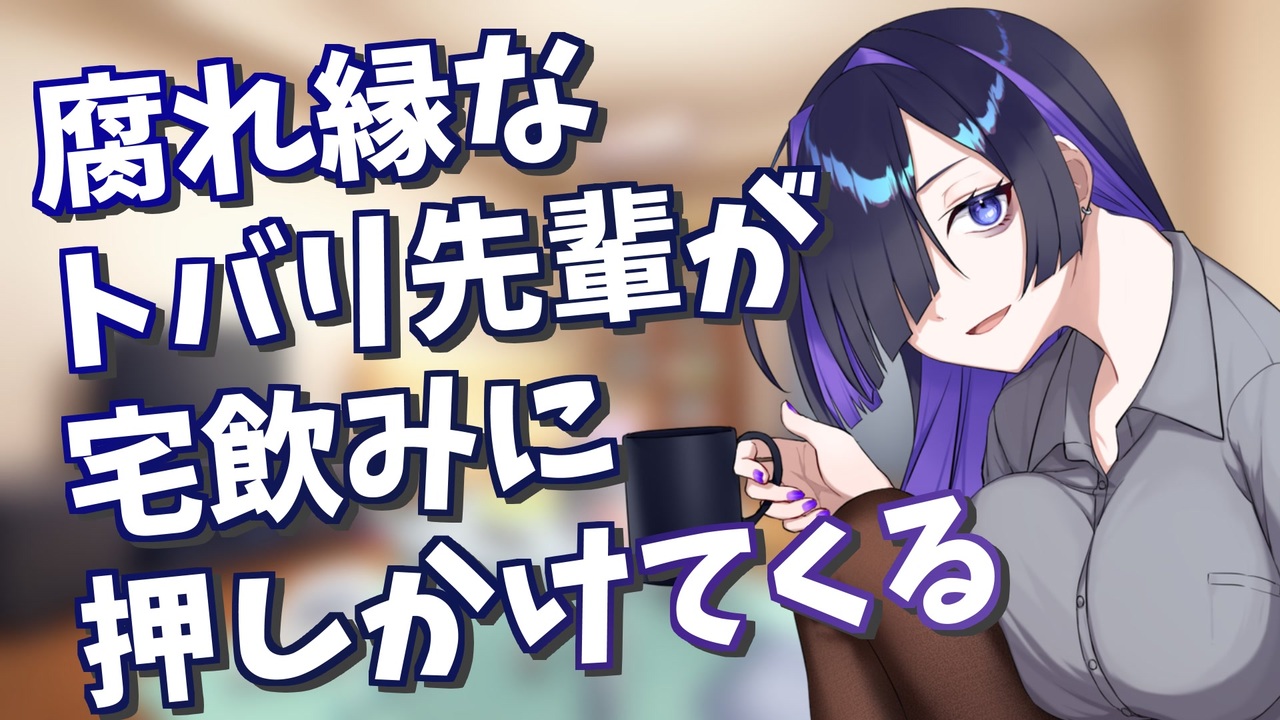 タイトル詐欺です。<br>宅飲み感よりも癒しを重視しております、酒に酔ったトバリさんを期待された方は申し訳ございません。<br><br>学生時代からの腐れ縁なトバリ先輩が急に貴方の家に宅飲みしに押しかけてくる一幕をイメージした作品です。<br><br>イヤホン・ヘッドホンでのご視聴をお勧めいたします。<br><br>以下を利用させていただきました。<br>■音声合成ソフト<br>・A.I.VOICE 2 夜語トバリ<br><br>■立ち絵<br>・なごにや 様<br> <a href="https://seiga.nicovideo.jp/seiga/im11213837" target="_blank" rel="noopener nofollow">https://seiga.nicovideo.jp/seiga/im11213837</a><br><br>■背景画像<br>・みんちりえ 様<br> <a href="https://min-chi.material.jp/" target="_blank" rel="noopener nofollow">https://min-chi.material.jp/</a><br><br>■音声素材<br>・あしもす 様<br>・音人 ~OnーJin~ 様<br>・効果音ラボ 様<br>・Diebrust(ディーブルスト) 様<br> ・色んな効果音集100パート<br> ・色んな効果音集100パート2<br>・DLsiteクリエイター学園 様<br>・mosoundworks 様