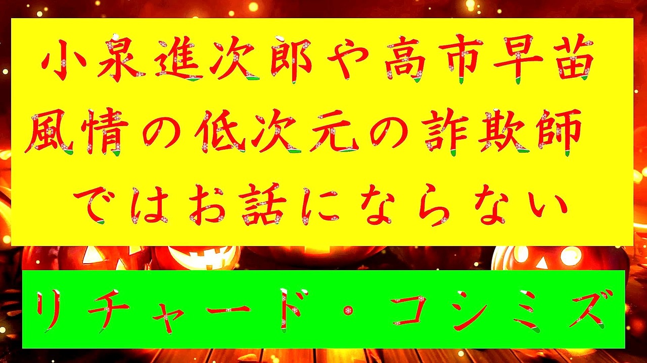 <span style="color: #ff0000;"><strong>◐「『 日本 』の『 復活 』を担う『 リーダー 』は、『 小泉進次郎 』や『 高市早苗 』風情の『 低次元 』の『 詐欺師 』ではお話にならない ① 」</strong></span><br><br> <span style="color: #38761d;"><strong>◐『「 リチャード・コシミズ・チャンネル 」</strong></span><span style="color: #ff0000;"><strong>⦅ ニコニコ チャンネル ⦆</strong></span><span style="color: #38761d;"><strong>』</strong></span><br> <span style="color: #0000ff;"><strong><a href="https://ch.nicovideo.jp/richardkoshimizu" target="_blank" rel="noopener nofollow">https://ch.nicovideo.jp/richardkoshimizu</a></strong></span><br><br><span style="color: #38761d;"><strong> ◐『「 リチャード・コシミズ 」</strong></span><span style="color: #ff0000;"><strong>「 ニコニコ生放送⦅ LIVE ⦆」</strong></span><span style="color: #38761d;"><strong>』</strong></span><br> <span style="color: #0000ff;"><strong><a href="https://www.nicovideo.jp/user/120930363/live_programs" target="_blank" rel="noopener nofollow">https://www.nicovideo.jp/user/120930363/live_programs</a></strong></span><br><br><span style="color: #38761d;"><strong> ◐『「 リチャード・コシミズ 講演会 」</strong></span><span style="color: #ff0000;"><strong>公式「 動画ギャラリー 」⦅ 最新動画 ⦆⦅ YouTube版 ⦆</strong></span><span style="color: #38761d;"><strong>』</strong></span><br> <span style="color: #0000ff;"><strong><a href="https://www.youtube.com/@richardkoshimizu-video-gallery" target="_blank" rel="noopener nofollow">https://www.youtube.com/@richardkoshimizu-video-gallery</a></strong></span><br><br>