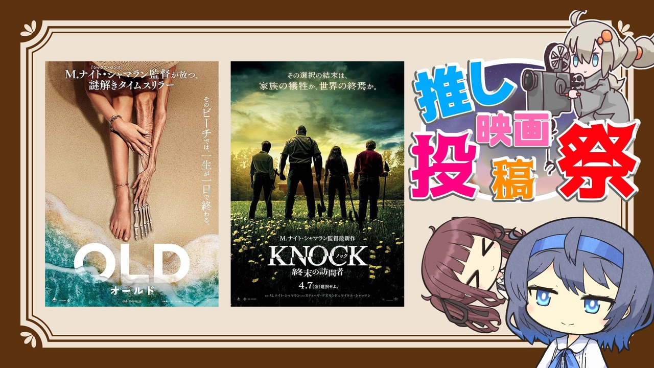 M・ナイト・シャマラン監督の新しめの映画2本を紹介します<br><br>動画冒頭でも触れていますが「私はこういう解釈をしたから好き」という話なので、この動画によって作品の受け取り方が変わってしまう可能性があります<br>気になる人はご注意を<br><br><s>かりせんをねじ込んだおかげで話そうとしていた内容が一つ吹き飛びました</s><br><br>追記<br>ダークマッチを見てきました<br>→<a href="https://www.nicovideo.jp/watch/sm45596111" class="watch">sm45596111</a><br><br>「オールド」<br>予告編<br><span style="font-size: 10px;">→<a href="https://youtu.be/Ggszv_W-z78?si=IlFn9hqiOrtzPD3E" target="_blank" rel="noopener nofollow">https://youtu.be/Ggszv_W-z78?si=IlFn9hqiOrtzPD3E</a></span><br>Amazonの配信ページ<br><span style="font-size: 10px;">→<a href="https://www.amazon.co.jp/gp/video/detail/B09LTLJQ3T/ref=atv_dp_share_cu_r" target="_blank" rel="noopener nofollow">https://www.amazon.co.jp/gp/video/detail/B09LTLJQ3T/ref=atv_dp_share_cu_r</a></span><br>U-NEXTの配信ページ<br><span style="font-size: 10px;">→<a href="https://video-share.unext.jp/video/title/SID0065074" target="_blank" rel="noopener nofollow">https://video-share.unext.jp/video/title/SID0065074</a></span><br><br>「ノック 終末の訪問者」<br>予告編<br><span style="font-size: 10px;">→<a href="https://youtu.be/yhXBvz187fM?si=6Jrw_y4otpyDx0t3" target="_blank" rel="noopener nofollow">https://youtu.be/yhXBvz187fM?si=6Jrw_y4otpyDx0t3</a></span><br>Amazonの配信ページ<br><span style="font-size: 10px;">→<a href="https://www.amazon.co.jp/gp/video/detail/B0C54LJFVT/ref=atv_dp_share_cu_r" target="_blank" rel="noopener nofollow">https://www.amazon.co.jp/gp/video/detail/B0C54LJFVT/ref=atv_dp_share_cu_r</a></span><br>U-NEXTの配信ページ<br><span style="font-size: 10px;">→<a href="https://video-share.unext.jp/video/title/SID0087781" target="_blank" rel="noopener nofollow">https://video-share.unext.jp/video/title/SID0087781</a></span><br><br>最後に紹介した映画の予告編<br>→<span style="font-size: 10px;"><a href="https://youtu.be/pl2iuzss8Mk?si=98reS-zMT-NXhpfs" target="_blank" rel="noopener nofollow">https://youtu.be/pl2iuzss8Mk?si=98reS-zMT-NXhpfs</a><br><br>Xとブルースカイで映画の話をしたりしていなかったり<br>→<a href="https://twitter.com/domgakuru91" target="_blank" rel="noopener nofollow">https://twitter.com/domgakuru91</a><br>→<a href="https://bsky.app/profile/domugakuru91.bsky.social" target="_blank" rel="noopener nofollow">https://bsky.app/profile/domugakuru91.bsky.social</a></span>