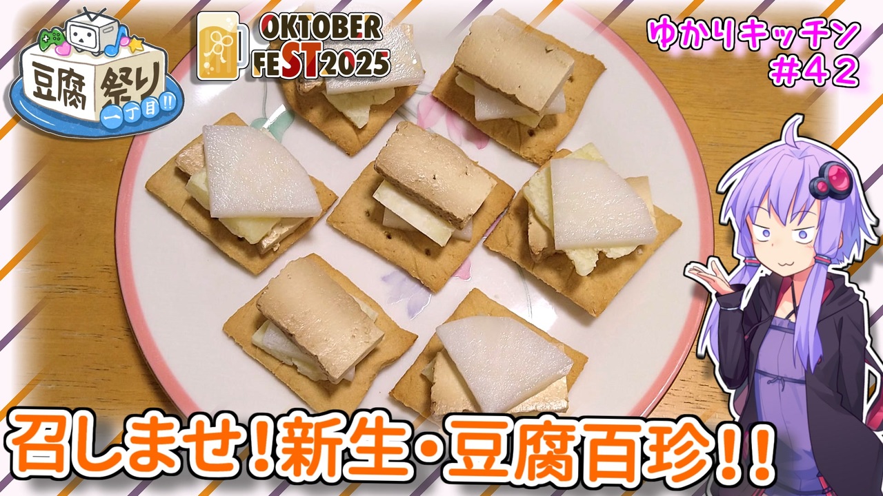 <span style="font-size: 16px;"><strong>T.N.Chaos氏の「豆腐祭り一丁目!!」(<a href="https://www.nicovideo.jp/watch/sm44986799" class="watch">sm44986799</a>)内の特別企画「実録!『召しませ!新生・豆腐百珍!!』」(<a href="https://www.nicovideo.jp/watch/sm45420229" class="watch">sm45420229</a>) に参加しました!<br>本日は私の番!豆腐と発酵のマリアージュ、とくとご覧あれ!!</strong></span><br><br><strong>豆腐祭り参加動画はあと2本上げてます!→<a href="https://www.nicovideo.jp/watch/sm45443850" class="watch">sm45443850</a>、<a href="https://www.nicovideo.jp/watch/sm45462125" class="watch">sm45462125</a></strong><br><br>まーじで遅刻寸前だった<br>体調不良と試作失敗と試行錯誤と食材準備のタイミングが致命的に噛み合わず収録完了が投稿前日<br><strong>動画内に編集ミスが含まれていますが修正間にあわず…→修正版<a href="https://www.nicovideo.jp/watch/sm45491400" class="watch">sm45491400</a><br><br>【実録!『召しませ!新生・豆腐百珍!!』】</strong><br>「召しませ!新生・豆腐百珍!!」紹介 <a href="https://www.nicovideo.jp/watch/sm45136039" class="watch">sm45136039</a><br> ダウンロードはこちら→<a href="https://x.gd/LUw07" target="_blank" rel="noopener nofollow">https://x.gd/LUw07</a><br>説明・実録企画プレイヤー発表 <a href="https://www.nicovideo.jp/watch/sm45242818" class="watch">sm45242818</a><br>リプレイ動画 <a href="https://www.nicovideo.jp/watch/sm45420229" class="watch">sm45420229</a><br>1日目 猫猫砲(<a href="https://www.nicovideo.jp/user/1508420" target="_blank" rel="noopener">user/1508420</a>) →<a href="https://www.nicovideo.jp/watch/sm45460979" class="watch">sm45460979</a><br>2日目 シロネコ(<a href="https://www.nicovideo.jp/user/56758" target="_blank" rel="noopener">user/56758</a>) →<a href="https://www.nicovideo.jp/watch/sm45476007" class="watch">sm45476007</a><br>3日目 若駒玄米茶(<a href="https://www.nicovideo.jp/user/8683449" target="_blank" rel="noopener">user/8683449</a>) →<a href="https://www.nicovideo.jp/watch/sm45468542" class="watch">sm45468542</a><br>4日目 カートン箱(<a href="https://www.nicovideo.jp/user/14508097" target="_blank" rel="noopener">user/14508097</a>) →ここ<br>5日目 なかむらいつき(<a href="https://www.nicovideo.jp/user/14933560" target="_blank" rel="noopener">user/14933560</a>) →<a href="https://www.nicovideo.jp/watch/sm45488414" class="watch">sm45488414</a><br>6日目 T.N.Chaos(<a href="https://www.nicovideo.jp/user/14566476" target="_blank" rel="noopener">user/14566476</a>) →<a href="https://www.nicovideo.jp/watch/sm45488202" class="watch">sm45488202</a><br>7日目 るみぃ(<a href="https://www.nicovideo.jp/user/56025407" target="_blank" rel="noopener">user/56025407</a>) →<a href="https://www.nicovideo.jp/watch/sm45491925" class="watch">sm45491925</a><br><br><strong>【本動画のレシピ】</strong><br>>豆腐の味噌漬け<br>木綿豆腐 1丁<br>味噌 50g<br>味醂 大匙2<br>酒 大匙1<br>豆腐に重石を掛けて水切り<br>キッチンペーパーか布に包み、調味料を合わせた物を塗る<br>冷蔵庫で1週間くらい漬ける<br><br>>豆腐クラッカー<br>小麦粉 適当<br>豆腐粉 適当<br>ベーキングパウダー 適当<br>砂糖 小匙1<br>塩 小匙1/4<br>サラダ油 大匙1/3<br>水 適当<br>粉類を混ぜ合わせ、油と水を一気に注ぎ混ぜる<br>生地を10分くらい休ませたら伸ばして切り分け<br>170℃のオーブンで25分くらい焼き色が付くまで焼く<br><br>>カナッペ<br>チーズ(モッツァレラ、チェダー、ゴーダなど)、大根を薄切りにする<br>豆腐を同じくらいのサイズに切る<br>クラッカー、チーズ、大根、豆腐の順に重ねて出来上がり<br><br><a target="_blank" href="https://qa.nicovideo.jp/faq/show/19424?site_domain=default" style="font-size: 13px;color: #657586; text-decoration: underline; line-height: 1.4">この動画は投稿者によって修正されました</a>