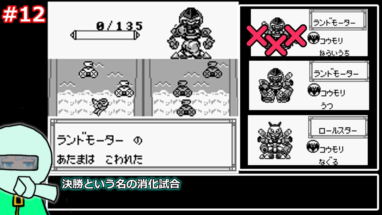 メダロット1の制限プレイです。<br>最初:<a href="https://www.nicovideo.jp/watch/sm45269059" class="watch">sm45269059</a><br>次回:<a href="https://www.nicovideo.jp/watch/sm45517774" class="watch">sm45517774</a><br>マイリスト:<a href="https://www.nicovideo.jp/mylist/78609685" target="_blank" rel="noopener">mylist/78609685</a><br><br>■ルール<br>・戦闘が終わるたびに全パーツを右に1つズラします。<br>・右のパーツが無かった場合、もう一つズレます。<br>・複数のメダロットが戦闘に参加した場合は、編成画面の左上から順にズラします。<br>・メダルは固定します。ずっと同じティンペットに付け続けます。<br>・戦闘には好きな3体を使いますが、3体使った場合3体分の12パーツがズレます。<br>・雑魚戦は戦うのも逃げるのも自由です。ゲームオーバーにならない限り負けても続行します。<br>・ゴールはラスボスを倒してエンディングを見ること。<br>・パーツの購入は自由です。<br>・パーツの売却は同じパーツを2つ以上持っている場合のみ可能とします。<br /><br><br>■RTA・制限プレイpart1集<br><a href="https://www.nicovideo.jp/mylist/77257226" target="_blank" rel="noopener">mylist/77257226</a><br><br>■ゲームバックストーリー集<br><a href="https://www.nicovideo.jp/mylist/77257232" target="_blank" rel="noopener">mylist/77257232</a><br><br>■音楽BGM集<br><a href="https://www.nicovideo.jp/mylist/78040306" target="_blank" rel="noopener">mylist/78040306</a><br><br>形だけX始めました<br><a href="https://x.com/gurigurigaaa" target="_blank" rel="noopener nofollow">https://x.com/gurigurigaaa</a><br><br><a target="_blank" href="https://qa.nicovideo.jp/faq/show/19424?site_domain=default" style="font-size: 13px;color: #657586; text-decoration: underline; line-height: 1.4">この動画は投稿者によって修正されました</a>