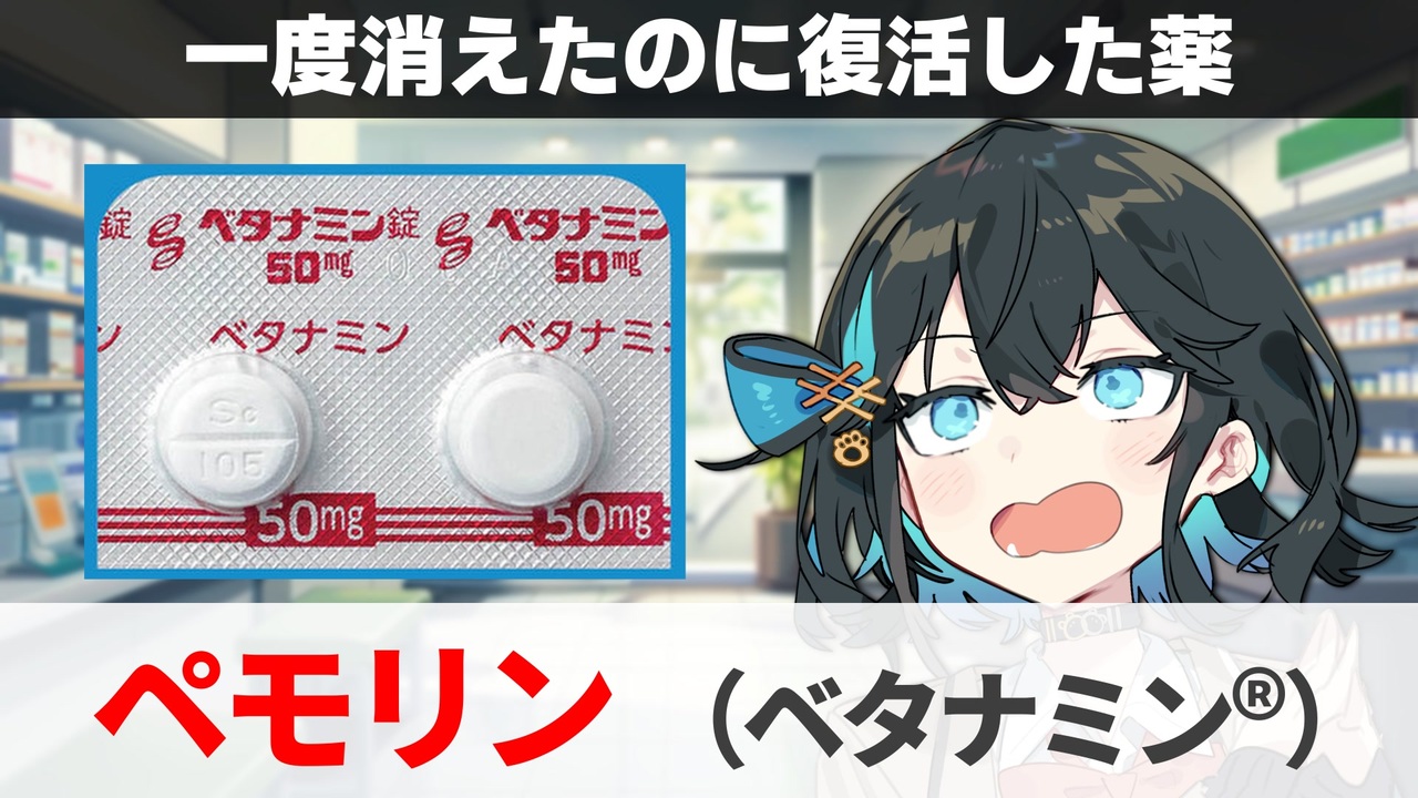 定期的に、1つのお薬を取り上げて詳しく解説する企画です。<br><br><span style="color: #ff0000;"><strong>いいねを押すとプチお薬解説を見ることができます。</strong></span><br><br>==============================================================<br>☆SNS等まとめ<br>●Youtube(ゲーム実況チャンネル)<br><a href="https://www.youtube.com/channel/UCcLWyYVS3ysazvYjN7pKXuw" target="_blank" rel="noopener nofollow">https://www.youtube.com/channel/UCcLWyYVS3ysazvYjN7pKXuw</a><br>●Youtube(お薬解説チャンネル)<strong>本シリーズはこちらに投稿</strong><br><a href="https://www.youtube.com/channel/UCqp3XrY7wux-E3kl4A4ZmQQ" target="_blank" rel="noopener nofollow">https://www.youtube.com/channel/UCqp3XrY7wux-E3kl4A4ZmQQ</a><br>●Twitter: <a href="https://twitter.com/Iwashi_bibili" target="_blank" rel="noopener nofollow">https://twitter.com/Iwashi_bibili</a><br><span style="color: #262626;">●bluesky:<a href="https://bsky.app/profile/iwashi-pharm.bsky.social" target="_blank" rel="noopener nofollow">https://bsky.app/profile/iwashi-pharm.bsky.social</a></span><br>●Instagram :<a href="https://www.instagram.com/iwashi_pharm/" target="_blank" rel="noopener nofollow">https://www.instagram.com/iwashi_pharm/</a><br><br>==============================================================<br>立ち絵:<br>かれい 様(<a href="https://seiga.nicovideo.jp/seiga/im11390154" target="_blank" rel="noopener">im11390154</a>)<br><br>使用ソフト:<br>Davinci resolve<br>PPgarage<br>VOICEPEAK AoiSupport<br>