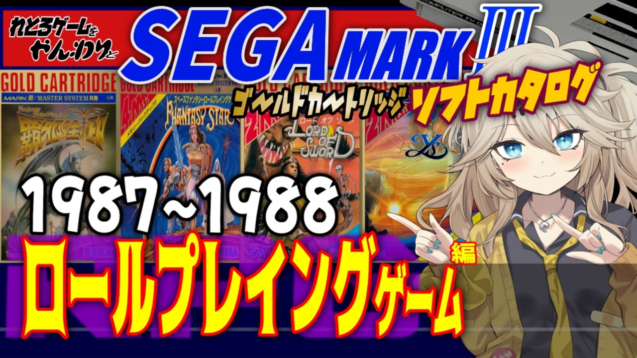 【セガマーク3】で1987-1988年に発売したロールプレイングゲーム 【覇邪の封印】<br>【ファンタシースター】 【ロード オブ ソード】【イース】をカタログ的に<br>紹介し操作説明、解説、裏技等含んだ内容のレトロゲーム動画です。<br><br>今回「ソフトウェアトーク原石祭2025」へ当動画で参加しています。<br>※動画はゆっくり音声、春日部つむぎ、四国めたんを使用して作成しています。<br><br>【今回の紹介作品】<br><a href="#" class="seekTime" data-seekTime="0:00" onclick="seekNicoPlayer('#0:00'); return false;">#0:00</a> ✅️スタート<br><a href="#" class="seekTime" data-seekTime="0:25" onclick="seekNicoPlayer('#0:25'); return false;">#0:25</a> ✅️覇邪の封印<br><a href="#" class="seekTime" data-seekTime="9:06" onclick="seekNicoPlayer('#9:06'); return false;">#9:06</a> ✅️ファンタシースター<br><a href="#" class="seekTime" data-seekTime="20:08" onclick="seekNicoPlayer('#20:08'); return false;">#20:08</a> ✅️ロード オブ ソード<br><a href="#" class="seekTime" data-seekTime="28:17" onclick="seekNicoPlayer('#28:17'); return false;">#28:17</a> ✅️イース<br><a href="#" class="seekTime" data-seekTime="38:03" onclick="seekNicoPlayer('#38:03'); return false;">#38:03</a> ✅️エンディング<br><br>※動画内で覇邪の封印のタイトル表記を間違えて破と表示してます。正しくは覇邪です。<br><br>●━━━━━━━━━━━━━━━━━━━━━━━●<br><br>SEGA公式<br><a href="https://www.sega.jp/history/hard/segamark3/software.html" target="_blank" rel="noopener nofollow">https://www.sega.jp/history/hard/segamark3/software.html</a><br><br>春日部つむぎ(VOICEVOX)<br><a href="https://tsumugi-official.studio.site/top" target="_blank" rel="noopener nofollow">https://tsumugi-official.studio.site/top</a><br>四国めたん(VOICEVOX)<br><a href="https://voicevox.hiroshiba.jp/dormitory/shikoku_metan/" target="_blank" rel="noopener nofollow">https://voicevox.hiroshiba.jp/dormitory/shikoku_metan/</a><br><br>ED曲<br>FLASH☆BEAT <br><a href="https://dova-s.jp/bgm/play15464.html" target="_blank" rel="noopener nofollow">https://dova-s.jp/bgm/play15464.html</a><br><br>●━━━━━━━━━━━━━━━━━━━━━━━●<br><br>#レトロゲーム #セガマーク3 #春日部つむぎ #ゆっくり実況 #voicevox 実況