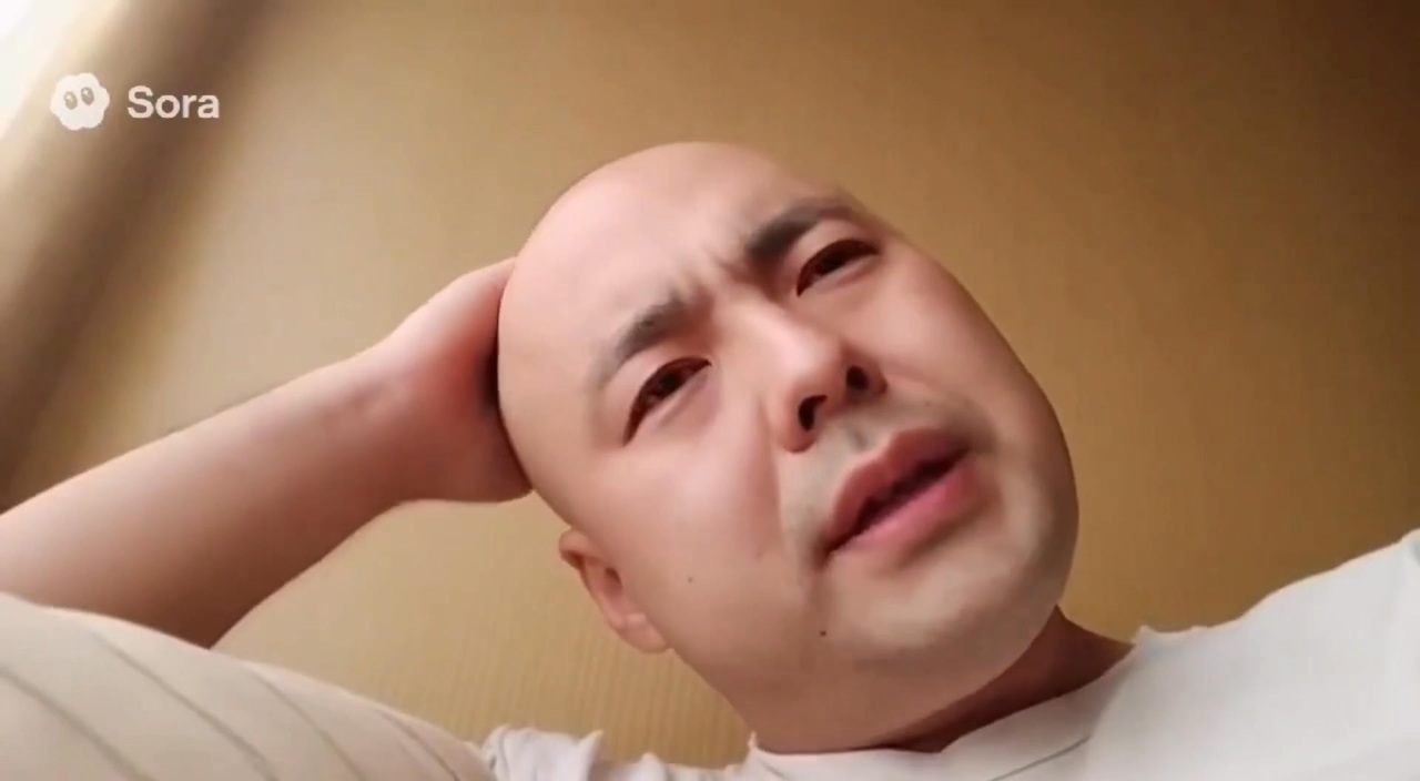 「寝方ミスったスキンヘッドの40代男性」と入力すると超高確率で生成されます sora2が使える方はお試しあれ