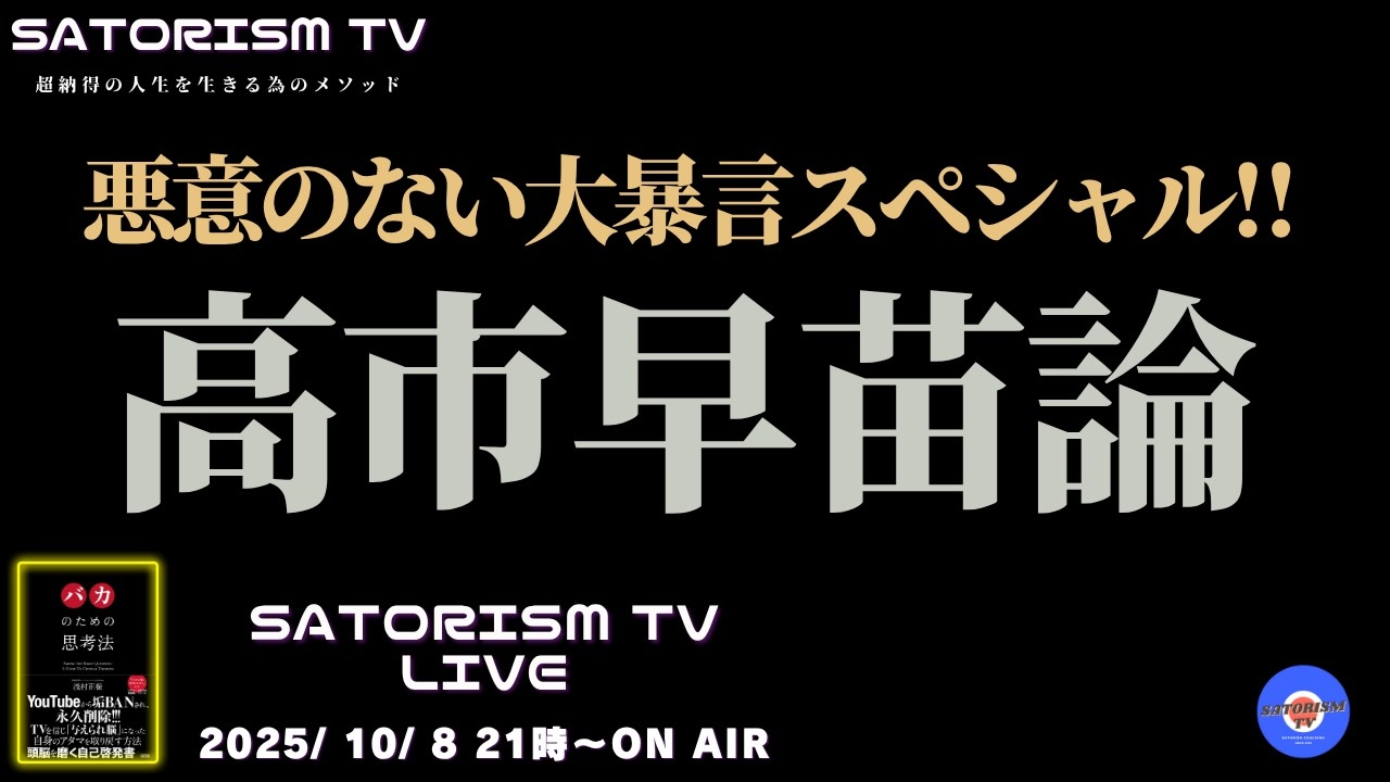 ■有料会員制 動画チャンネル「SATORISM GOLDEN TV」<br>特別動画配信中!<br>入会はコチラ <a href="https://nicochannel.jp/satorism-premium/welcome" target="_blank" rel="noopener nofollow">https://nicochannel.jp/satorism-premium/welcome</a><br><br>■有料会員様でログインできない等の不具合がある会員様へ<br>ドワンゴ苦情窓口はコチラ <a href="https://help.nicochannel.jp/hc/ja/requests/new?ticket_form_id=4414714831513" target="_blank" rel="noopener nofollow">https://help.nicochannel.jp/hc/ja/requests/new?ticket_form_id=4414714831513</a><br><br>■ANGLE磁気ネックレス 公式オンラインショップ<br><a href="https://c.affitch.com/?ref=PM9XTQJ6QGME" target="_blank" rel="noopener nofollow">https://c.affitch.com/?ref=PM9XTQJ6QGME</a><br><br>■合法アドレノクロム説明会をご希望の方 <a href="https://satorism-tv.com/home/contact/" target="_blank" rel="noopener nofollow">https://satorism-tv.com/home/contact/</a><br><br>■イベント情報<br>NEW!!2025年10月11日(土) サトリズム歴史考察「シオン議定書から読み解く近未来 最新版」in北とぴあ<br>チケット予約はコチラ <a href="https://peatix.com/event/4568336" target="_blank" rel="noopener nofollow">https://peatix.com/event/4568336</a><br>持ち込み制懇親会はコチラ <a href="https://peatix.com/event/4568337" target="_blank" rel="noopener nofollow">https://peatix.com/event/4568337</a><br><br>NEW!!2025年10月16日(木) WEBセミナー さくらインベスト主催「国家の戦争とあなたの副業」 参加費無料! 参加ご予約 <a href="https://seminar2.sakura-inv.com/yt/" target="_blank" rel="noopener nofollow">https://seminar2.sakura-inv.com/yt/</a><br><br>NEW!!2025年10月18日(土) サンワード証券主催 「戦争とカネ」in浜松市 初静岡! 参加費無料!<br>参加ご予約 <a href="https://www.sunward-t.co.jp/seminar/2025/10/18_3/index_k.html" target="_blank" rel="noopener nofollow">https://www.sunward-t.co.jp/seminar/2025/10/18_3/index_k.html</a><br><br>NEW!! 2025年11月2日(日) サトリズム歴史考察「日本の逆襲・後編」in新大阪<br>チケット予約はコチラ <a href="https://peatix.com/event/4582684" target="_blank" rel="noopener nofollow">https://peatix.com/event/4582684</a><br>※合法アドレノクロム会員の方も予約だけは行ってください。