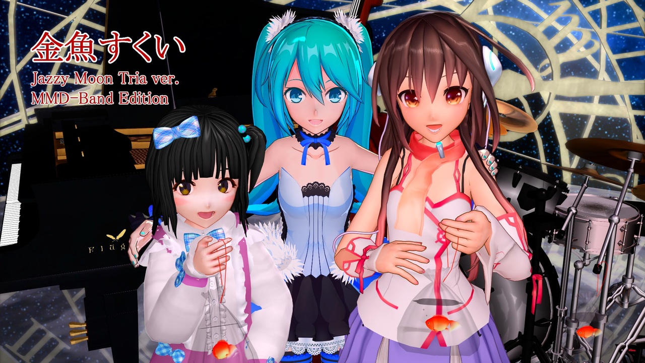 お願い 掬って ・・・<br><br>金魚すくい <a href="https://www.nicovideo.jp/watch/sm44160243" class="watch">sm44160243</a> のトリオバージョンの MMD-Band Edition です。<br><br>tuさん <a href="https://www.nicovideo.jp/user/6983487" target="_blank" rel="noopener">user/6983487</a> とのコラボです。<br><br>作詞,作曲,編曲:A2Z <a href="https://x.com/A2Zjp" target="_blank" rel="noopener nofollow">https://x.com/A2Zjp</a><br>MMD編集:tu <a href="https://x.com/taro_ukiuki" target="_blank" rel="noopener nofollow">https://x.com/taro_ukiuki</a><br><br>ボーカル:初音ミク<br>コーラス:kokone<br>ピアノのお手伝い:海野美雨<br><br>++++++<br><br>YouTubeにも投稿しています。<br><a href="https://youtu.be/wdxVX0cV4o0" target="_blank" rel="noopener nofollow">https://youtu.be/wdxVX0cV4o0</a><br><br>++++++<br><br>『 金魚すくい 』<br><br>あれはきっと<br>時計仕掛けだった<br>せわしないノイズに<br>追いかけられて<br><br>滲む 霞む<br>唇にのせた紅の<br>色の彩度<br><br>時計の針が止まるほど<br>静かな世界に連れてって<br>薄紅色のお月様<br>優しく愛でるような<br>速度で泳がせて<br><br>小さな空と<br>僅かな光<br>摩天楼の影に<br>生まれる闇夜<br><br>お願い 掬って<br>あなたがいい<br>お名前付けて呼んでほしい<br><br>月が見えない闇夜では<br>息をすることもままならない<br>魔法をかけたら 手を繋いで<br>明かりが燈るまで<br>精霊が宿るまで<br><br>きっと 紅が 消えてたら<br>自分さえも 失ってた<br><br>時計の針が止まるほど<br>静かな世界に連れてって<br>薄紅色のお月様<br>優しく愛でるような<br>速度で泳がせて<br><br />++++++<br><br>新曲: 月下香 <a href="https://www.nicovideo.jp/watch/sm45800839" class="watch">sm45800839</a><br>新コラボ動画: 金魚すくい ( Jazzy Moon Tria ver. ) ( MMD-Band Edition ) / 初音ミク kokone 海野美雨 <a href="https://www.nicovideo.jp/watch/sm45494048" class="watch">sm45494048</a><br>作品マイリスト: <a href="https://www.nicovideo.jp/mylist/58223674" target="_blank" rel="noopener">mylist/58223674</a><br><br>X(Twitter): <a href="https://x.com/A2Zjp" target="_blank" rel="noopener nofollow">https://x.com/A2Zjp</a><br>YouTube: <a href="https://www.youtube.com/c/A2Zjp" target="_blank" rel="noopener nofollow">https://www.youtube.com/c/A2Zjp</a><br>YouTube Music: <a href="https://music.youtube.com/channel/UC2JdNit_kFWc4zivRg7TYCQ" target="_blank" rel="noopener nofollow">https://music.youtube.com/channel/UC2JdNit_kFWc4zivRg7TYCQ</a><br>Spotify: <a href="https://open.spotify.com/artist/0z8ji3LFEQ6fKRCdryzLtN" target="_blank" rel="noopener nofollow">https://open.spotify.com/artist/0z8ji3LFEQ6fKRCdryzLtN</a><br>ピアプロ(オフボ等): <a href="http://piapro.jp/A_2_Z" target="_blank" rel="noopener nofollow">http://piapro.jp/A_2_Z</a><br><br>【過去曲より抜粋】<br>月詠 <a href="https://www.nicovideo.jp/watch/sm45678352" class="watch">sm45678352</a><br>カゲロウ <a href="https://www.nicovideo.jp/watch/sm45462162" class="watch">sm45462162</a><br>Angel's Trumpet <a href="https://www.nicovideo.jp/watch/sm45234024" class="watch">sm45234024</a><br>Noir <a href="https://www.nicovideo.jp/watch/sm45027949" class="watch">sm45027949</a><br>花影 <a href="https://www.nicovideo.jp/watch/sm44822240" class="watch">sm44822240</a><br>ラピスラズリ <a href="https://www.nicovideo.jp/watch/sm40197160" class="watch">sm40197160</a><br>Shady Moon <a href="https://www.nicovideo.jp/watch/sm39077746" class="watch">sm39077746</a><br>黒蝶 <a href="https://www.nicovideo.jp/watch/sm40675999" class="watch">sm40675999</a><br>零れ月 <a href="https://www.nicovideo.jp/watch/sm40990544" class="watch">sm40990544</a><br>