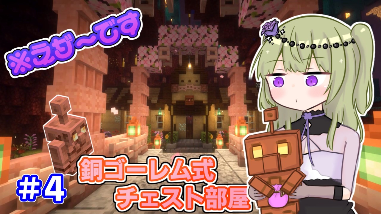バージョン1.21.9!銅の時代が来ました!<br>銅ゴーレムが追加されたのでそれを利用したチェスト部屋を作ります。難しかった…<br><br>VOICEVOX:春日部つむぎ<br>VOICEVOX:冥鳴ひまり<br><br>このシリーズ→<a href="https://www.nicovideo.jp/series/531305" target="_blank" rel="noopener">series/531305</a><br>part1→<a href="https://www.nicovideo.jp/watch/sm45401129" class="watch">sm45401129</a><br>前→<a href="https://www.nicovideo.jp/watch/sm45463673" class="watch">sm45463673</a> | 次→<a href="https://www.nicovideo.jp/watch/sm45537068" class="watch">sm45537068</a><br /><br><span style="color: #741b47; font-size: 16px;"><strong>part1リンク</strong></span>→<a href="https://www.nicovideo.jp/mylist/67341625" target="_blank" rel="noopener">mylist/67341625</a><br><br><span style="color: #3c78d8;"><strong>X(旧Twitter)</strong></span>→<a href="https://x.com/kono_tofu" target="_blank" rel="noopener nofollow">https://x.com/kono_tofu</a><br>