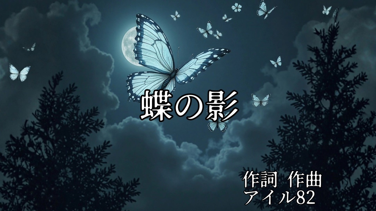 #クロカル杯かっこいい 部門に参加しました!<br>タイトルは「蝶の影」です。<br><br>白い羽が闇を裂き、夜空を舞う。<br>消えてしまった愛を胸に、儚くも美しく生きようとする魂の歌。<br>重厚なベースにロックサウンドと切ない旋律で描く、永遠の彼方への物語です。<br>🎧ジャンル:ロック/幻想系<br>🎵テーマ:儚さ・喪失・永遠<br><br>以下は歌詞です。<br>ーーーーーーーーーーーーーーーーーーーーー<br>【蝶の影】<br><br>白い羽が揺れて 夜の闇を裂くように<br>孤独を抱いたまま 空へ舞い上がる蝶<br><br>触れたら壊れそうな 淡い記憶の欠片<br>名前も呼べぬままに ただ遠くを見てた<br><br>永遠の彼方 君は微笑んでいるの?<br>時を越えても 届かぬ声が胸を締めつける<br>蝶のように儚い 愛を残して<br>消えていった光は まだ夢の中<br><br>傷ついた羽音が 風に溶けて消えてく<br>「さよなら」言えぬまま 瞳を閉じた夜<br><br>永遠の彼方 君は眠っているの?<br>運命に抗えず 指先から零れ落ちていく<br>蝶のように脆い 願い託して<br>散りゆくその瞬間 君を想う<br><br>ひらひらと 夜空に舞う<br>蝶の影 追いかけても<br>もう二度と 届かない<br>永遠の彼方へ――<br><br><br><br><br><br>作詞作曲:アイル82<br>ボーカル:花響 琴(SynthesizerV)<br>画像:Canva AI