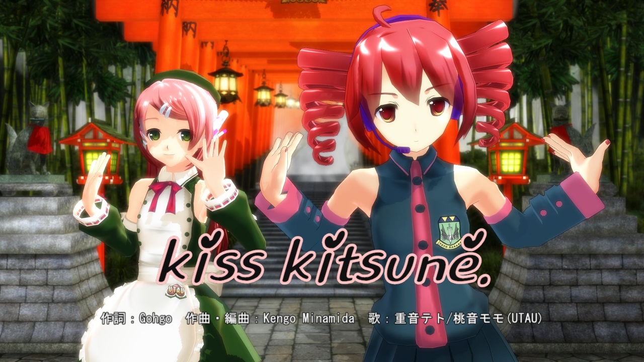 今回は、重音テトと桃音モモで「キスキツネ」です。<br>以前USTを作成したので、使わないともったいないということで制作してみました。<br><br>USTは以下の動画で配布しています。興味のある方はどうぞ。<br>【東北イタコ誕生祭2025】キスキツネ(UST配布)【UTAU+MMD】<br><a href="https://www.nicovideo.jp/watch/sm45111390" target="_blank" rel="noopener nofollow">https://www.nicovideo.jp/watch/sm45111390</a><br><br>原曲・モーション・オフボーカル<br> HIMEHINA『キスキツネ』<br> 作詞:Gohgo 作曲・編曲:Kengo Minamida<br><a href="https://www.youtube.com/watch?v=GgOOykZcfnI" target="_blank" rel="noopener nofollow">https://www.youtube.com/watch?v=GgOOykZcfnI</a><br>歌(音源)<br> 重音テト(重音テト音声ライブラリー)<br> 桃音モモ(桃音モモ連続音F4_2009+単独音F4_Lite_2009)<br>ステージ<br> 千本鳥居風ステージ(<a href="https://seiga.nicovideo.jp/seiga/im6256482" target="_blank" rel="noopener">im6256482</a>) torisutsuki様<br>モデル<br> 重音テト act.2 ver 5.12(<a href="https://www.nicovideo.jp/watch/sm13052270" class="watch">sm13052270</a>) わたべななみ様<br> 桃音モモ ver 2.11(<a href="https://www.nicovideo.jp/watch/sm14529272" class="watch">sm14529272</a>) わたべななみ様<br><br>その他、エフェクト、ツール等多数使わせていただきました。<br>モデル、モーション配布ありがとうございます。<br>※詳細は動画末クレジット、及びコンテンツツリー参照<br><br /><span style="color: #0000ff;">過去のUTAU作品はこちら。</span><br><a href="https://www.nicovideo.jp/mylist/13050864" target="_blank" rel="noopener">mylist/13050864</a><br><span style="color: #0000ff;">Xで新規動画の報告などをしています。</span><br><a href="http://twitter.com/nicomuka" target="_blank" rel="noopener nofollow">http://twitter.com/nicomuka</a><br><span style="color: #0000ff;">YouTubeでも公開中。過去作の高解像度版等あります。</span><br><a href="https://www.youtube.com/@nicomuka-hokanko" target="_blank" rel="noopener nofollow">https://www.youtube.com/@nicomuka-hokanko</a><br>