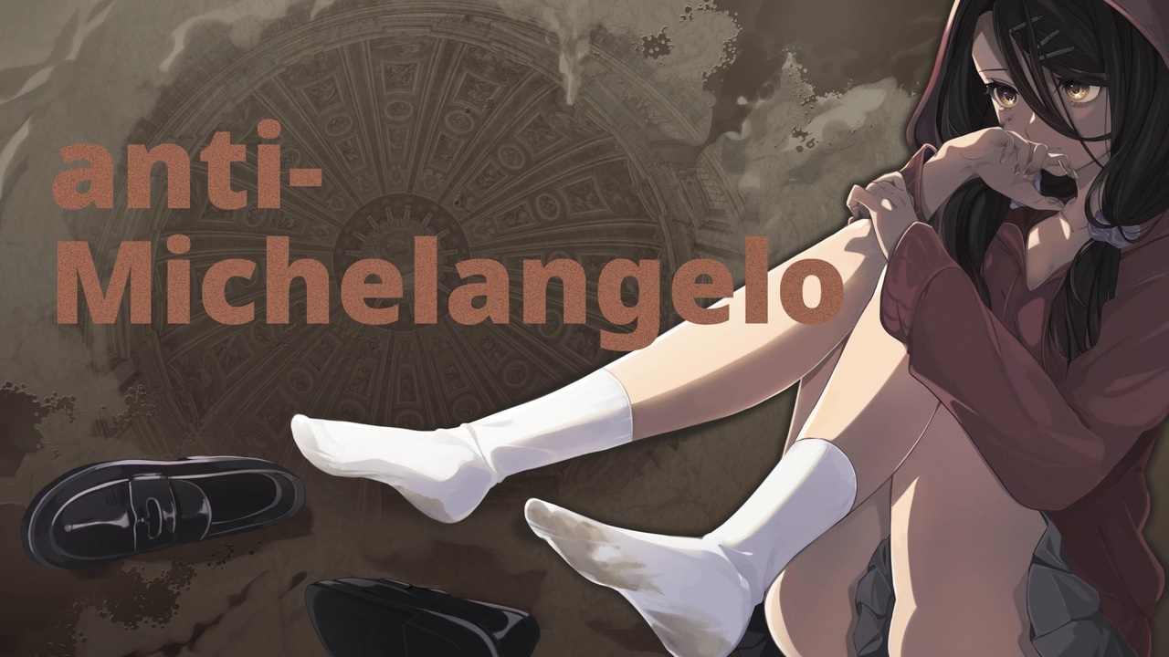 ミケランジェロは大理石の塊を前にして、こう言ったと伝えられています。<br>「私は石の中にすでに天使を見ていた。私はただ、それを解き放ってやっただけだ。」<br>つまり、彫刻とは石から形を「作る」作業ではなく、もともと石の中に存在している真の姿(理想の形)を掘り出してあげる作業だ、という思想です。<br><br>では、人間の中には理想の形は存在するのでしょうか。<br><br>ーーーーーーーーーーーーーーーーーーーーーーーーーーーーーーーーー<br><br><br>始めまして、Raiaです。<br>初投稿となります。<br>可愛がってあげてください。<br><br>Vocal:鏡音リン<br>Music/Lyric/Guitar:Raia <a href="https://x.com/raiaVRC" target="_blank" rel="noopener nofollow">https://x.com/raiaVRC</a><br>Art:めしろ <a href="https://x.com/Lycoris_Albi" target="_blank" rel="noopener nofollow">https://x.com/Lycoris_Albi</a><br><br>off vocal Ver.(ギガファイル便も有)<br><a href="https://www.nicovideo.jp/watch/sm45499009" target="_blank" rel="noopener nofollow">https://www.nicovideo.jp/watch/sm45499009</a><br><br>ーーーーーーーーーーーーーーーーーーーーーーーーーーーーーーーーー<br>Lyric<br><br>掘っても 掘っても<br>見つけられない私の中の 彫像のかたち<br>欠けたネイル 指で弄って<br>声が漏れる<br>anti-michelangelo<br><br>不安の色を 焦燥感の筆で<br>混ぜて作る この感情は <br>鮮やかだった 空を塗り潰して<br>明日の色を 見えなくさせる<br><br>夜が来るたびに<br>そろり空の街<br>潜る土の中で<br>いつか飛び立つ日の 夢を見てる<br><br>針を落とした レコードのように <br>胸の噛み跡を 爪でなぞる<br>痛みを 音色に乗せるわ<br>これで君みたいに歌えるなら<br><br>目を上げれば うなじが軋むから<br>横目でしか見れなくなった<br>積み上がった 宮殿(パレス)の切石は<br>おこづかいで買えるでしょうか<br><br>夜が来るたびに<br>ふわり泡の街<br>沈む海の底で<br>眠る船と自分を重ねてる<br><br>何者にもなれないのなら せめて<br>悲劇のヒロインの席は残しておいて<br><br>針を戻しても レコードは廻る<br>仮初めの詩(うた)が 喉に詰まる<br>無為に溶けた 時の歩みが<br>新月の空へと続いていく