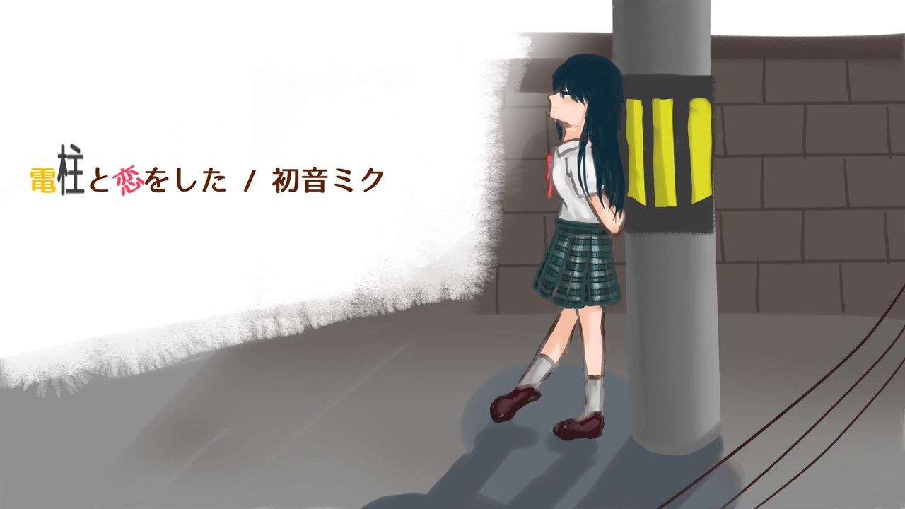 「本当のルーキー祭り2025秋」「クロカル杯(クロカル杯かわいい)」参加作品です。<br>よろしくお願いします!!<br><br>「電柱と恋をした 」<br><br>歌唱:初音ミク<br>作詞作曲:ヘリッピィ<br>イラスト:作者非公開<br>映像:ヘリッピィ<br><br>Xアカウント:<a href="https://x.com/helippyhce" target="_blank" rel="noopener nofollow">https://x.com/helippyhce</a><br><br>オフボーカル(映像なし):<a href="https://piapro.jp/t/iabS" target="_blank" rel="noopener nofollow">https://piapro.jp/t/iabS</a><br>オフボーカル(映像あり):<a href="https://note.com/heliumhce/n/nbabe5dddd012" target="_blank" rel="noopener nofollow">https://note.com/heliumhce/n/nbabe5dddd012</a><br>ボーカル楽譜:<a href="https://note.com/heliumhce/n/nbabe5dddd012" target="_blank" rel="noopener nofollow">https://note.com/heliumhce/n/nbabe5dddd012</a><br><br>※情報追記しました(2025/10/20)<br><br>歌詞<br>-----<br>[1番]<br>パンを咥えて大慌て<br>交差点の出会い頭<br>電柱とぶつかって<br>電柱と恋をした<br><br>もたれかけても 倒れかけても<br>受け止めてくれるの<br>黄色と黒の服のコーデも<br>おしゃれな感じ<br><br>電chu♪ chu♪ chu♪<br>電chu♪ chu♪ chu♪<br>上がるボルテージ<br>電chu♪ chu♪ chu♪<br>電chu♪ chu♪ chu♪<br>電柱と恋をした<br><br>[2番]<br>夕焼け空の帰り道<br>いつもの坂の曲がり角<br>電柱とぶつかって<br>電柱と入れ替わる<br><br>私が電柱 電柱がワタシ<br>こっち見てるワンコ<br>立ってる私 見守るワタシ<br>それもいいかも<br><br>電chu♪ chu♪ chu♪<br>電chu♪ chu♪ chu♪<br>上がる周波数<br>電chu♪ chu♪ chu♪<br>電chu♪ chu♪ chu♪<br>電柱と恋をした<br><br>