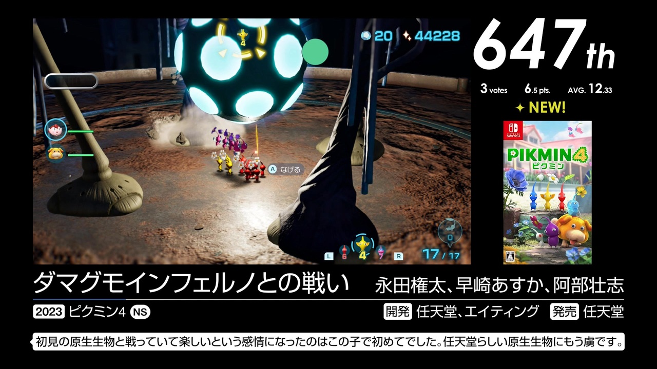 669位~647位の26曲を収録。<br><br>2024年6月11日~2024年8月1日で行われた「第17回みんなで決めるゲーム音楽ベスト100」の投票結果動画です。集計人≠動画制作者<br>90年代の6451進行たまらんね<br><br><a href="https://www.nicovideo.jp/watch/sm45474961" class="watch">sm45474961</a>←前 次→<a href="https://www.nicovideo.jp/watch/sm45524174" class="watch">sm45524174</a><br><a href="https://www.nicovideo.jp/mylist/78315745" target="_blank" rel="noopener">mylist/78315745</a> <a href="https://www.nicovideo.jp/series/523562" target="_blank" rel="noopener">series/523562</a><br><br>669位 <a href="#" class="seekTime" data-seekTime="0:40" onclick="seekNicoPlayer('#0:40'); return false;">#0:40</a>, <a href="#" class="seekTime" data-seekTime="5:00" onclick="seekNicoPlayer('#5:00'); return false;">#5:00</a>, <a href="#" class="seekTime" data-seekTime="7:07" onclick="seekNicoPlayer('#7:07'); return false;">#7:07</a>, <a href="#" class="seekTime" data-seekTime="9:04" onclick="seekNicoPlayer('#9:04'); return false;">#9:04</a> / 663位 <a href="#" class="seekTime" data-seekTime="11:46" onclick="seekNicoPlayer('#11:46'); return false;">#11:46</a>, <a href="#" class="seekTime" data-seekTime="14:46" onclick="seekNicoPlayer('#14:46'); return false;">#14:46</a>, <a href="#" class="seekTime" data-seekTime="17:19" onclick="seekNicoPlayer('#17:19'); return false;">#17:19</a>, <a href="#" class="seekTime" data-seekTime="20:32" onclick="seekNicoPlayer('#20:32'); return false;">#20:32</a>, <a href="#" class="seekTime" data-seekTime="23:12" onclick="seekNicoPlayer('#23:12'); return false;">#23:12</a>, <a href="#" class="seekTime" data-seekTime="24:30" onclick="seekNicoPlayer('#24:30'); return false;">#24:30</a> / 656位 <a href="#" class="seekTime" data-seekTime="28:13" onclick="seekNicoPlayer('#28:13'); return false;">#28:13</a>, <a href="#" class="seekTime" data-seekTime="31:40" onclick="seekNicoPlayer('#31:40'); return false;">#31:40</a>, <a href="#" class="seekTime" data-seekTime="35:40" onclick="seekNicoPlayer('#35:40'); return false;">#35:40</a>, <a href="#" class="seekTime" data-seekTime="37:24" onclick="seekNicoPlayer('#37:24'); return false;">#37:24</a>, <a href="#" class="seekTime" data-seekTime="39:36" onclick="seekNicoPlayer('#39:36'); return false;">#39:36</a>, <a href="#" class="seekTime" data-seekTime="43:54" onclick="seekNicoPlayer('#43:54'); return false;">#43:54</a>, <a href="#" class="seekTime" data-seekTime="46:04" onclick="seekNicoPlayer('#46:04'); return false;">#46:04</a> / 654位 <a href="#" class="seekTime" data-seekTime="50:38" onclick="seekNicoPlayer('#50:38'); return false;">#50:38</a>, <a href="#" class="seekTime" data-seekTime="54:20" onclick="seekNicoPlayer('#54:20'); return false;">#54:20</a> / 647位 <a href="#" class="seekTime" data-seekTime="57:54" onclick="seekNicoPlayer('#57:54'); return false;">#57:54</a>, <a href="#" class="seekTime" data-seekTime="59:26" onclick="seekNicoPlayer('#59:26'); return false;">#59:26</a>, <a href="#" class="seekTime" data-seekTime="63:03" onclick="seekNicoPlayer('#63:03'); return false;">#63:03</a>, <a href="#" class="seekTime" data-seekTime="66:57" onclick="seekNicoPlayer('#66:57'); return false;">#66:57</a>, <a href="#" class="seekTime" data-seekTime="69:51" onclick="seekNicoPlayer('#69:51'); return false;">#69:51</a>, <a href="#" class="seekTime" data-seekTime="73:50" onclick="seekNicoPlayer('#73:50'); return false;">#73:50</a>, <a href="#" class="seekTime" data-seekTime="76:45" onclick="seekNicoPlayer('#76:45'); return false;">#76:45</a><br><br>----------<br><br>スクリーンショット募集中!詳細はこちら↓<br><a href="https://gamemusic17.vercel.app/" target="_blank" rel="noopener nofollow">https://gamemusic17.vercel.app/</a><br><br>結果詳細↓<br><a href="https://w.atwiki.jp/gamemusicbest100/pages/10538.html" target="_blank" rel="noopener nofollow">https://w.atwiki.jp/gamemusicbest100/pages/10538.html</a><br /><br>----------<br><br>第2回みんなで決める和風曲ランキング 2/28まで投票受付中!<br><a href="https://jbbs.shitaraba.net/bbs/read.cgi/music/25545/1764514793/" target="_blank" rel="noopener nofollow">https://jbbs.shitaraba.net/bbs/read.cgi/music/25545/1764514793/</a><br><br>みんなで決める2025年の新曲ゲーム音楽ランキング 3/31まで投票受付中!<br><a href="https://jbbs.shitaraba.net/bbs/read.cgi/music/25545/1769870472/" target="_blank" rel="noopener nofollow">https://jbbs.shitaraba.net/bbs/read.cgi/music/25545/1769870472/</a>