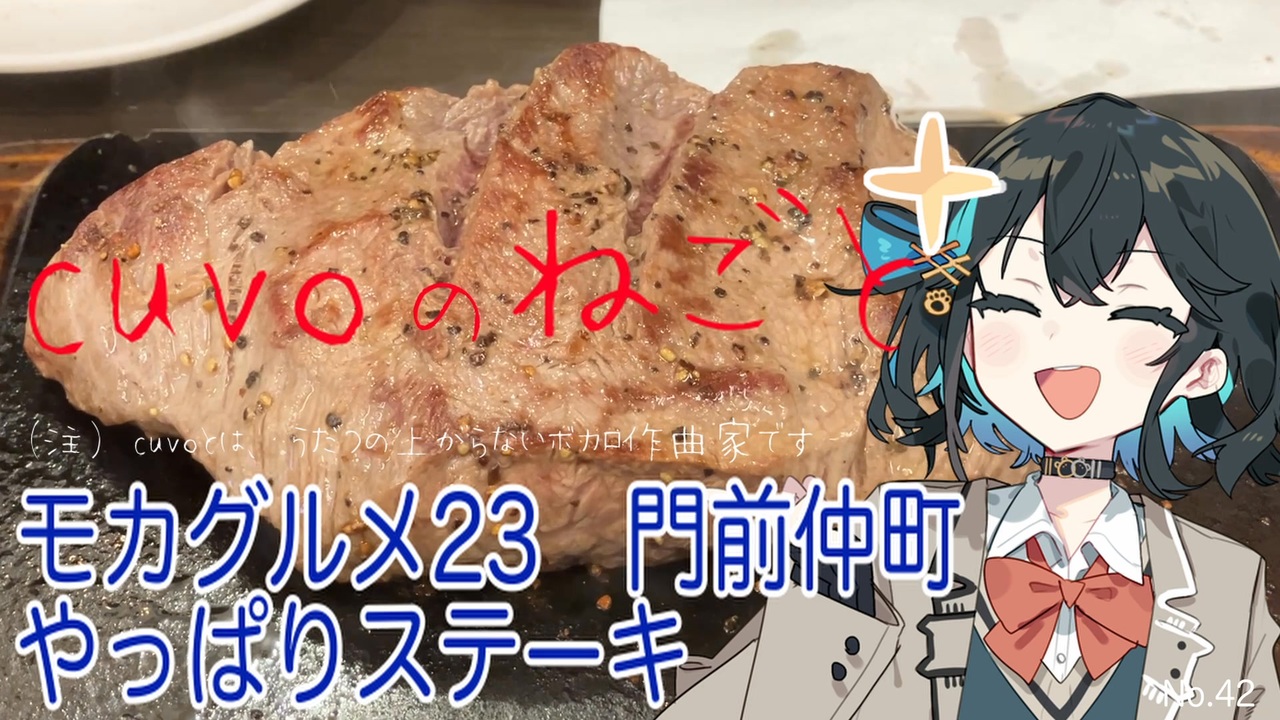 こんにちは!<br>cuvoのねごと、第42回です!<br><br>シリーズ「モカグルメ」の<br>第23弾をお届けします!<br><br>今回は門前仲町にある<br>やっぱりステーキに行ってきました<br><br>お肉の部位が色々あって迷っちゃいましたけど<br>ミスジというお肉が美味しかったです♪<br><br>「これが至福ってやつですかぁ!」<br><br>気になった方は、ぜひ行ってみてくださいね!<br><br>ーーーーーーー<br>▼Xで発信中!cuvoのねごと<br><a href="https://twitter.com/cuvo_jpn" target="_blank" rel="noopener nofollow">https://twitter.com/cuvo_jpn</a><br><br><br>▼エンディングテーマ<br>「飲みに行こう」<br>曲:cuvo / 詞:vie<br>歌:seven(neutrino)<br><br>↓ニコ動<br><a href="https://nico.ms/sm41946436" target="_blank" rel="noopener nofollow">https://nico.ms/sm41946436</a><br><br>↓YouTube<br><a href="https://youtu.be/aJWyRuT7cGk" target="_blank" rel="noopener nofollow">https://youtu.be/aJWyRuT7cGk</a><br><br>ーーーーーーーーーーーーーーーーー<br><br />ニコニコ動画(cuvo:ボカロ曲)<br><a href="https://www.nicovideo.jp/user/123099454/video" target="_blank" rel="noopener nofollow">https://www.nicovideo.jp/user/123099454/video</a><br><br>YouTube<br><a href="https://www.youtube.com/channel/UCeyFWGAsM1u0r7XpT0yeDPA/" target="_blank" rel="noopener nofollow">https://www.youtube.com/channel/UCeyFWGAsM1u0r7XpT0yeDPA/</a><br><br>X(旧Twitter)<br><a href="https://twitter.com/cuvo_jpn" target="_blank" rel="noopener nofollow">https://twitter.com/cuvo_jpn</a><br><br>Instagram<br><a href="https://www.instagram.com/cuvo_jpn/" target="_blank" rel="noopener nofollow">https://www.instagram.com/cuvo_jpn/</a>
