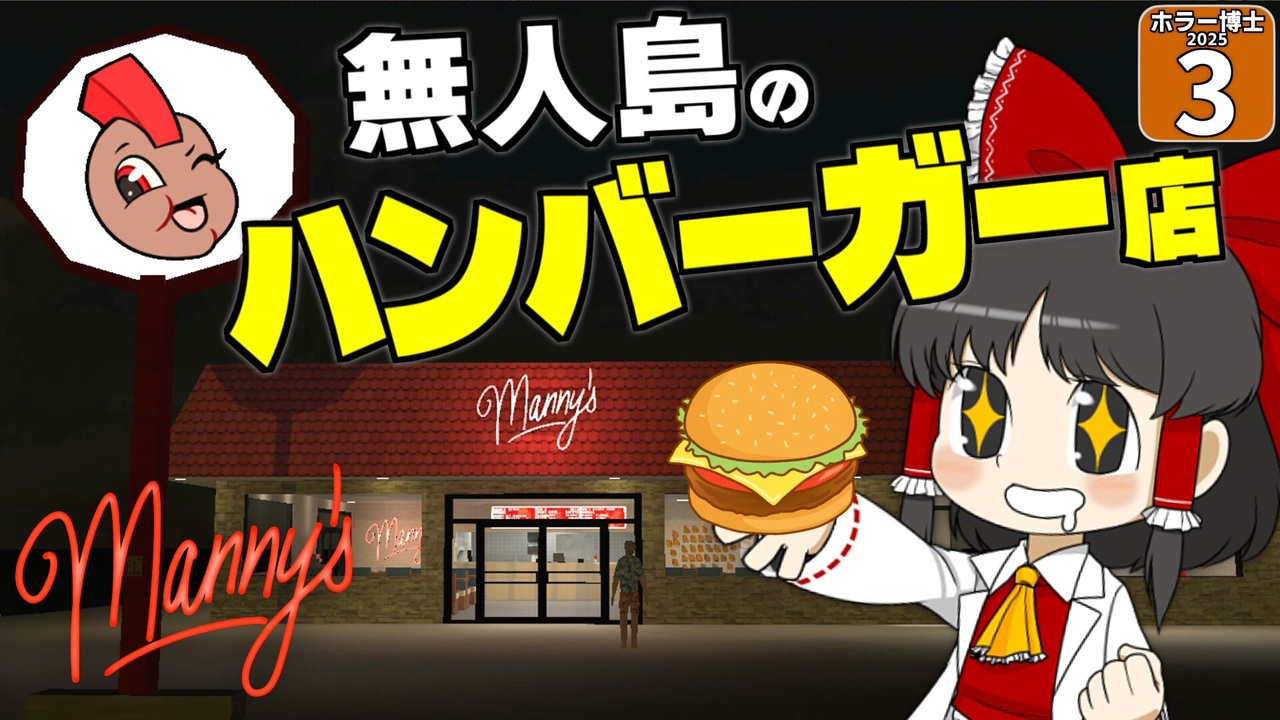 ハロウィンには少し早いけど、ホラー企画3日め! <br>今回は「Manny's」に挑戦!<br>漂流した無人島に存在するのはヤシの木と白い砂浜だけ……<br>絶望する主人公の前に突如、バーガーショップが現れた!<br>奇想天外な物語に、なぜか涙が止まらない!? <br><br>「Manny's」はこちらから! <br><a href="https://store.steampowered.com/app/2518900/" target="_blank" rel="noopener nofollow">https://store.steampowered.com/app/2518900/</a> <br><br>博士のX:<a href="https://twitter.com/siu_lab" target="_blank" rel="noopener nofollow">https://twitter.com/siu_lab</a> <br>