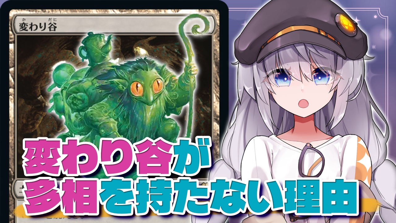 変わり谷というカードは、多相というキーワード能力がありません<br>これは多相が特性定義能力であり、継続的効果の種類別における第4種のレイヤーでのみ機能するからです<br>能力を自身に与える場合は第6種のレイヤーで行い、第4種のタイプ変更より後になります<br>よって、多相を与える行為は事実上無意味なのです<br><br>【参考】<br>CR.613. 継続的効果の相互作用<br><strong><a href="https://mtg-jp.com/gameplay/rules/docs/0006836/" target="_blank" rel="noopener nofollow">https://mtg-jp.com/gameplay/rules/docs/0006836/</a></strong><br>「種類別」<br><a href="http://www.mtgwiki.com/wiki/%E7%A8%AE%E9%A1%9E%E5%88%A5" target="_blank" rel="noopener nofollow">http://www.mtgwiki.com/wiki/%E7%A8%AE%E9%A1%9E%E5%88%A5</a><br>「特性定義能力」<br><a href="http://www.mtgwiki.com/wiki/%E7%89%B9%E6%80%A7%E5%AE%9A%E7%BE%A9%E8%83%BD%E5%8A%9B" target="_blank" rel="noopener nofollow">http://www.mtgwiki.com/wiki/%E7%89%B9%E6%80%A7%E5%AE%9A%E7%BE%A9%E8%83%BD%E5%8A%9B</a><br><br>【音声】<br>紲星あかり(AIVoice2)、結月ゆかり(AIVoice2)<br><br>【立ち絵】<br>紲星あかり <a href="https://seiga.nicovideo.jp/seiga/im11103547" target="_blank" rel="noopener nofollow">https://seiga.nicovideo.jp/seiga/im11103547</a><br> <a href="https://seiga.nicovideo.jp/seiga/im11311669" target="_blank" rel="noopener nofollow">https://seiga.nicovideo.jp/seiga/im11311669</a><br>結月ゆかり <a href="https://seiga.nicovideo.jp/seiga/im11568959" target="_blank" rel="noopener nofollow">https://seiga.nicovideo.jp/seiga/im11568959</a><br><br>この動画はファンコンテンツ・ポリシーに沿った非公式のファンコンテンツです。 ウィザーズ社の認可/許諾は得ていません。 題材の一部に、ウィザーズ・オブ・ザ・コースト社の財産を含んでいます。 ©Wizards of the Coast LLC.
