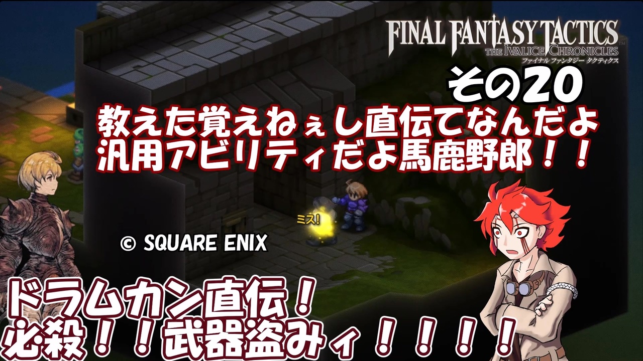 この動画はスチーム版ファイナルファンタジータクティクス イヴァリースクロニクルズの実況動画です。<br><br><br>難易度:タクティカル<br><br>※そのうち縛る縛り内容。<br>①ラムザくん 見習い戦士固定(まだいけてる)<br>②ネコ耳 斧or両手武器装備(両手持ちでもOK)<br>③ドラムカン 弓・ボウガン・銃装備<br>④きりたんです 武器攻撃禁止(たまに忘れる)<br>⑤あいちゃん 盾装備orサムラァイ<br><br><a href="https://www.nicovideo.jp/watch/sm45502782" class="watch">sm45502782</a> ← 前 次 → <a href="https://www.nicovideo.jp/watch/sm45505454" class="watch">sm45505454</a><br>マイリスト →<a href="https://www.nicovideo.jp/mylist/72149077" target="_blank" rel="noopener">mylist/72149077</a><br>その1リスト →<a href="https://www.nicovideo.jp/mylist/58364125" target="_blank" rel="noopener">mylist/58364125</a> <br><br>VOICEVOX:春日部つむぎ(ネコ耳) 玄野武宏(ラムザ・ベオルブ) 中部つるぎ(アグリアス様)<br> 青山龍星(ドラムカン) 東北きりたん(東北きりたん)<br> あいちゃん(中国うさぎ(立ち絵:akihiyo様作 立ち中国うさぎ素材 <a href="https://seiga.nicovideo.jp/seiga/im11211212" target="_blank" rel="noopener">im11211212</a>))<br>Voiceroid:東北きりたん(立ち絵:このりEX様作 東北きりたん立ち絵素材5 <a href="https://seiga.nicovideo.jp/seiga/im10819054" target="_blank" rel="noopener">im10819054</a>)<br><br>© SQUARE ENIX<br>