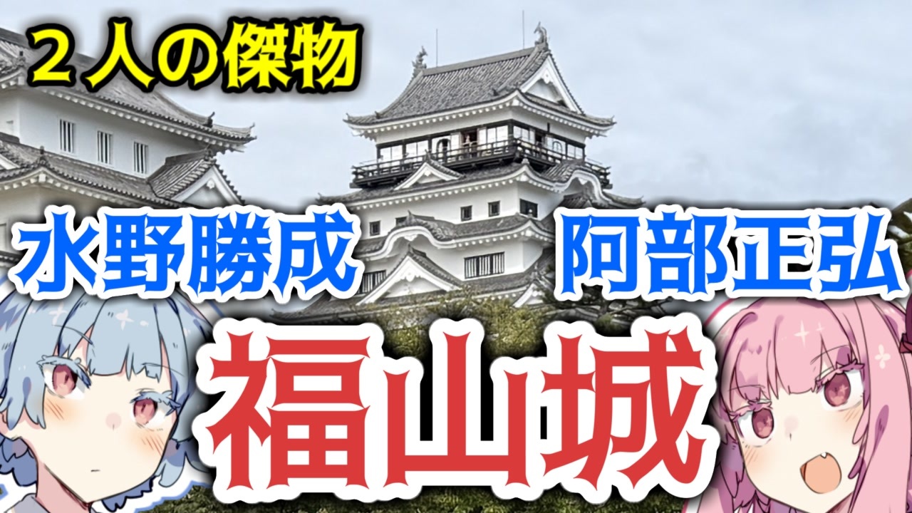2025年の旅行は広島。<br>まずは福山城からです。<br>相変わらずお城動画か歴史動画かは不明です。<br>密かに4k化しましたがニコニコではHD。。。<br><素材><br>BGM:甘茶の音楽工房 さま<br><a href="https://amachamusic.chagasi.com/" target="_blank" rel="noopener nofollow">https://amachamusic.chagasi.com/</a><br>立ち絵:からい さま<br><a href="https://seiga.nicovideo.jp/seiga/im7847458" target="_blank" rel="noopener nofollow">https://seiga.nicovideo.jp/seiga/im7847458</a><br>地図:OpenStreetMap さま<br><a href="https://openstreetmap.jp/" target="_blank" rel="noopener nofollow">https://openstreetmap.jp/</a><br><br><参考><br>ウィキペディア<br><a href="https://ja.wikipedia.org/" target="_blank" rel="noopener nofollow">https://ja.wikipedia.org/</a><br>…などなど<br><br><読み上げ><br>A.I.VOICE2:琴葉茜、琴葉葵<br><br><Youtube><br><a href="https://youtu.be/dJsj3DvBVKo" target="_blank" rel="noopener nofollow">https://youtu.be/dJsj3DvBVKo</a><br><X><br><a href="https://x.com/zushimi4321" target="_blank" rel="noopener nofollow">https://x.com/zushimi4321</a><br><br><撮影日><br>2025/9/24