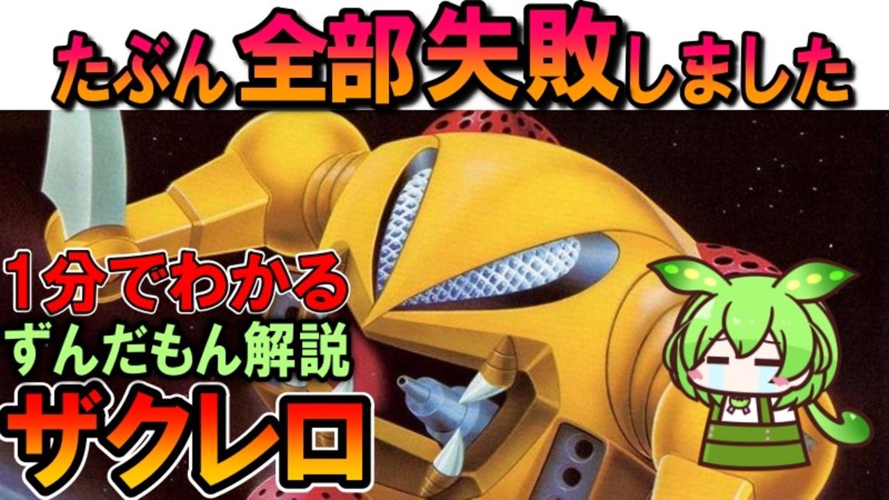 この動画は、You Tubeのショート動画にサムネをつけて内容はそのまま転載したものです。<br>いいねに次回予告的なものも。<br><br>ありったけの失敗をかき集めたみたいで凄いと思いました<br>ヨッフムさんは小説を読むと凄く良い人なのがわかりますが、余談が過ぎる気がしました<br><br>【結局何が失敗なの?】ザクレロの性能や活躍、失敗理由などを徹底解説【機動戦士ガンダム】<br><a href="https://www.nicovideo.jp/watch/sm45498156" target="_blank" rel="noopener nofollow">https://www.nicovideo.jp/watch/sm45498156</a><br><br>質問、などありましたらこちらにも<br><a href="https://twitter.com/@i4S0LHspdgzBTor" target="_blank" rel="noopener nofollow">https://twitter.com/@i4S0LHspdgzBTor</a><br><br>清見元康名義でカクヨムなどに小説を投稿しています! 面白ければブクマ、あるいは厳し目の評価など貰えると嬉しいです。<br>死に戻り34回目、もう疲れたので私アイドルになります!<br>※初期コンセプトは死に戻ったガルマがシャアを救うにはどうしたら良いのか的な物語を全部女の子でやった感じです。<br><a href="https://kakuyomu.jp/works/16817330662598051943" target="_blank" rel="noopener nofollow">https://kakuyomu.jp/works/16817330662598051943</a><br><br>以前の作品(短編シリアス):<br>転生した厄災の大魔女はやがて聖女と呼ばれる<br><a href="https://ncode.syosetu.com/n0827ha/" target="_blank" rel="noopener nofollow">https://ncode.syosetu.com/n0827ha/</a><br><br>VOICEVOX:ずんだもん<br><br>使用させていただいたずんだもん:<br>ずんだもん mini Deluxe(立ち絵) ver1.2<br><a href="https://seiga.nicovideo.jp/seiga/im10794509" target="_blank" rel="noopener nofollow">https://seiga.nicovideo.jp/seiga/im10794509</a><br><br>いつも広告、コメントありがとうございます。<br>励みになりますm(_ _)m<br>