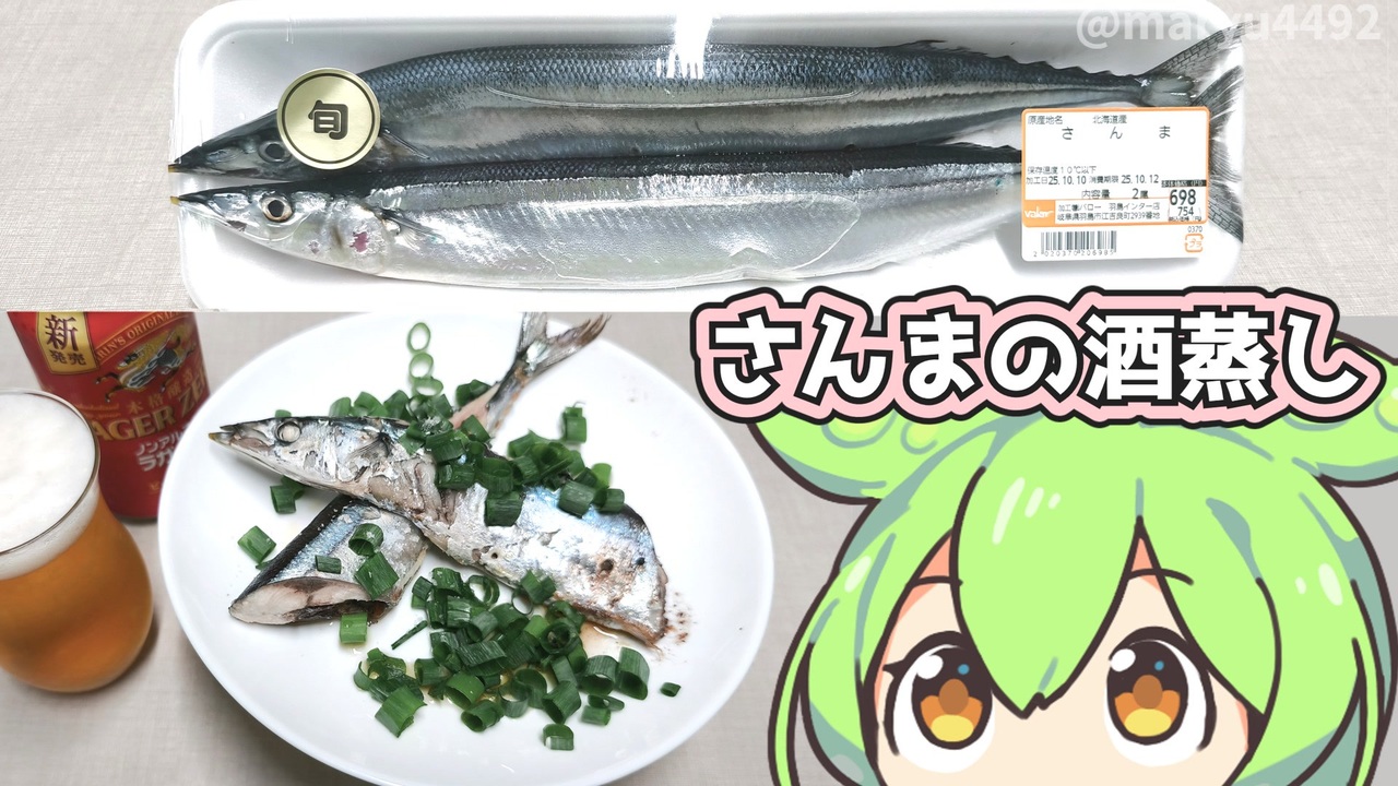 ネットニュースで知ったのですが、さんまは焼くだけでなく<br>茹でても美味しいらしいですね。<br>ただ、今年初めて買うさんまで失敗はしたくないので<br>間を取って酒蒸しを作ることにしました。<br><br><br><br>【参考】<br>参考にしたレシピ 長谷川あかりさん<br><a href="https://x.com/akari_hasegawa/status/1967146528348467509" target="_blank" rel="noopener nofollow">https://x.com/akari_hasegawa/status/1967146528348467509</a><br>キリン ラガーゼロ<br><a href="https://www.kirin.co.jp/alcohol/nonalcohol/lagerzero/" target="_blank" rel="noopener nofollow">https://www.kirin.co.jp/alcohol/nonalcohol/lagerzero/</a><br>アサヒ ゼロ<br><a href="https://www.asahibeer.co.jp/asahizero/" target="_blank" rel="noopener nofollow">https://www.asahibeer.co.jp/asahizero/</a><br><br>【使用した素材】(※敬称略) <br>(合成音声)VOICEVOX/ずんだもん/四国めたん<br><a href="https://voicevox.hiroshiba.jp/" target="_blank" rel="noopener nofollow">https://voicevox.hiroshiba.jp/</a> <br>(立ち絵)坂本アヒル<br> <a href="https://seiga.nicovideo.jp/seiga/im10788496" target="_blank" rel="noopener nofollow">https://seiga.nicovideo.jp/seiga/im10788496</a><br>(楽曲)甘茶の音楽工房/「楽しい麦畑」「フルーツパフェ」「お城の舞踏会」<br><a href="https://amachamusic.chagasi.com/" target="_blank" rel="noopener nofollow">https://amachamusic.chagasi.com/</a>