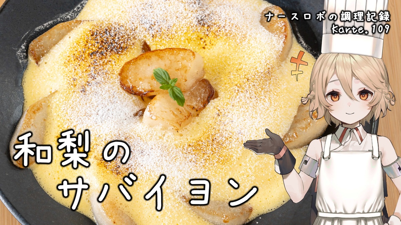 Part109は和梨のサバイヨンソース!<br>甘くないソースにもなるんですが、今回は甘めのザバオーネ風に仕上げてます。<br>和梨のバターソテーに添えていただきます。<br>白ワインと卵黄がベースのシンプルなソースですが<br>程よい酸味と華やかな香りが果物に合いますよ!<br>皆さんもぜひ試してみてくださいね。<br><br>音声: VOICEVOX:ナースロボ_タイプT<br>立ち絵: 捨て犬A<br>イラスト: いらすとや<br>SE: otologic, 効果音ラボ<br>BGM: BGMer<br><br /><br>[各種リンク]<br>ニコニコ動画: <a href="http://nicovideo.jp/user/130153578" target="_blank" rel="noopener nofollow">http://nicovideo.jp/user/130153578</a><br>YouTubeメイン(料理): <a href="http://youtube.com/@cooking25euph" target="_blank" rel="noopener nofollow">http://youtube.com/@cooking25euph</a><br>YouTubeサブ(料理以外): <a href="https://youtube.com/@sub25euph" target="_blank" rel="noopener nofollow">https://youtube.com/@sub25euph</a><br>X (twitter): <a href="https://twitter.com/nico25euph" target="_blank" rel="noopener nofollow">https://twitter.com/nico25euph</a><br>Bluesky: <a href="http://nico25euph.bsky.social" target="_blank" rel="noopener nofollow">http://nico25euph.bsky.social</a><br>TikTok: <a href="http://tiktok.com/@nico25euph" target="_blank" rel="noopener nofollow">http://tiktok.com/@nico25euph</a>