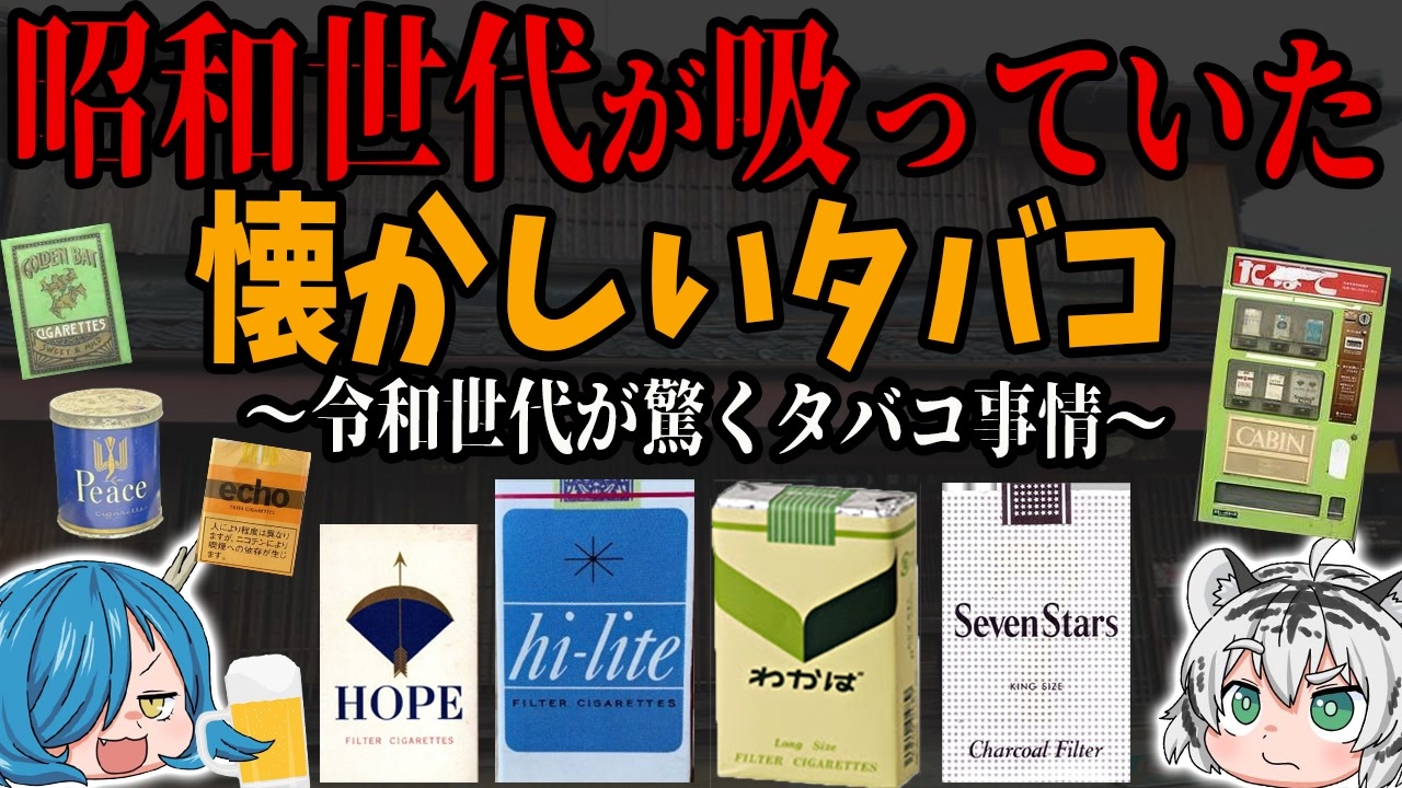 【昭和タバコあるある】昭和世代が吸っていた!懐かしいタバコ8選 <br />★グッズ販売<br><a href="https://suzuri.jp/FourBeasts" target="_blank" rel="noopener nofollow">https://suzuri.jp/FourBeasts</a><br><br>この動画は過去にyoutubeに投稿したものになります。<br><br>★四獣チャンネル ゆっくり解説<br><a href="https://www.youtube.com/channel/UCnhATjERdWpcr62UTzwuGYg" target="_blank" rel="noopener nofollow">https://www.youtube.com/channel/UCnhATjERdWpcr62UTzwuGYg</a><br><br>★Twitter <a href="https://twitter.com/FourBeastsCH" target="_blank" rel="noopener nofollow">https://twitter.com/FourBeastsCH</a><br><br>フリーBGM・音楽素材 H/MIX GALLERY