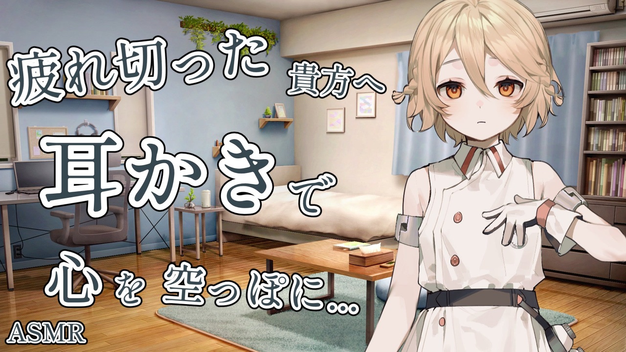 ※イヤホン推奨です <br><br>設定 <br>疲れ切ってしまい,もう何も考えられない貴方へ <br><br>音量、セリフ量、シチュエーション、キャラ設定など意見があればコメントください。参考にさせていただきます。 <br><br>使用音声 <br>VOICEVOX:ナースロボ_タイプT <br>立ち絵 <br>松尾粥(捨て犬A) 様 <br><br>編集ソフト <br>YMM4Lite <br><br>音源 <br>e†'ank 様「どこでも使えるASMR素材集 VOL.1」 <br><br>背景 <br>みんちり 様 <a href="https://commons.nicovideo.jp/works/nc351058" target="_blank" rel="noopener nofollow">https://commons.nicovideo.jp/works/nc351058</a> <br>#asmr #ナースロボ_タイプt #voicevox #voiceroid #耳かき #asmroid #シチュエーションボイス