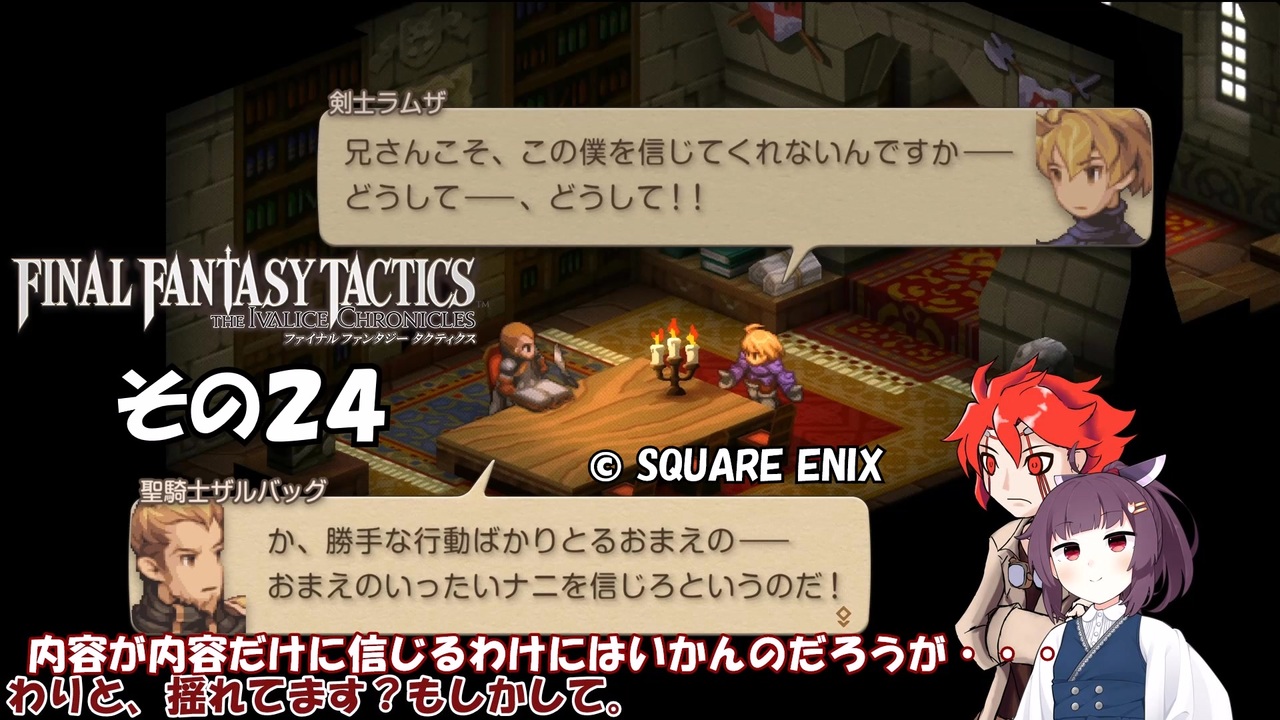 この動画はスチーム版ファイナルファンタジータクティクス イヴァリースクロニクルズの実況動画です。<br><br><br>難易度:タクティカル<br><br>※そのうち縛る縛り内容。<br>①ラムザくん 見習い戦士固定(まだいけてる)<br>②ネコ耳 斧or両手武器装備(両手持ちでもOK)<br>③ドラムカン 弓・ボウガン・銃装備<br>④きりたんです 武器攻撃禁止(たまに忘れる)<br>⑤あいちゃん 盾装備orサムラァイ<br><br><a href="https://www.nicovideo.jp/watch/sm45510266" class="watch">sm45510266</a> ← 前 次 → <a href="https://www.nicovideo.jp/watch/sm45518225" class="watch">sm45518225</a><br>マイリスト →<a href="https://www.nicovideo.jp/mylist/72149077" target="_blank" rel="noopener">mylist/72149077</a><br>その1リスト →<a href="https://www.nicovideo.jp/mylist/58364125" target="_blank" rel="noopener">mylist/58364125</a> <br><br>VOICEVOX:春日部つむぎ(ネコ耳) 玄野武宏(ラムザ・ベオルブ) 中部つるぎ(アグリアス様)<br> 青山龍星(ドラムカン) 東北きりたん(東北きりたん)<br> あいちゃん(中国うさぎ(立ち絵:akihiyo様作 立ち中国うさぎ素材 <a href="https://seiga.nicovideo.jp/seiga/im11211212" target="_blank" rel="noopener">im11211212</a>))<br>Voiceroid:東北きりたん(立ち絵:このりEX様作 東北きりたん立ち絵素材5 <a href="https://seiga.nicovideo.jp/seiga/im10819054" target="_blank" rel="noopener">im10819054</a>)<br><br>© SQUARE ENIX<br>
