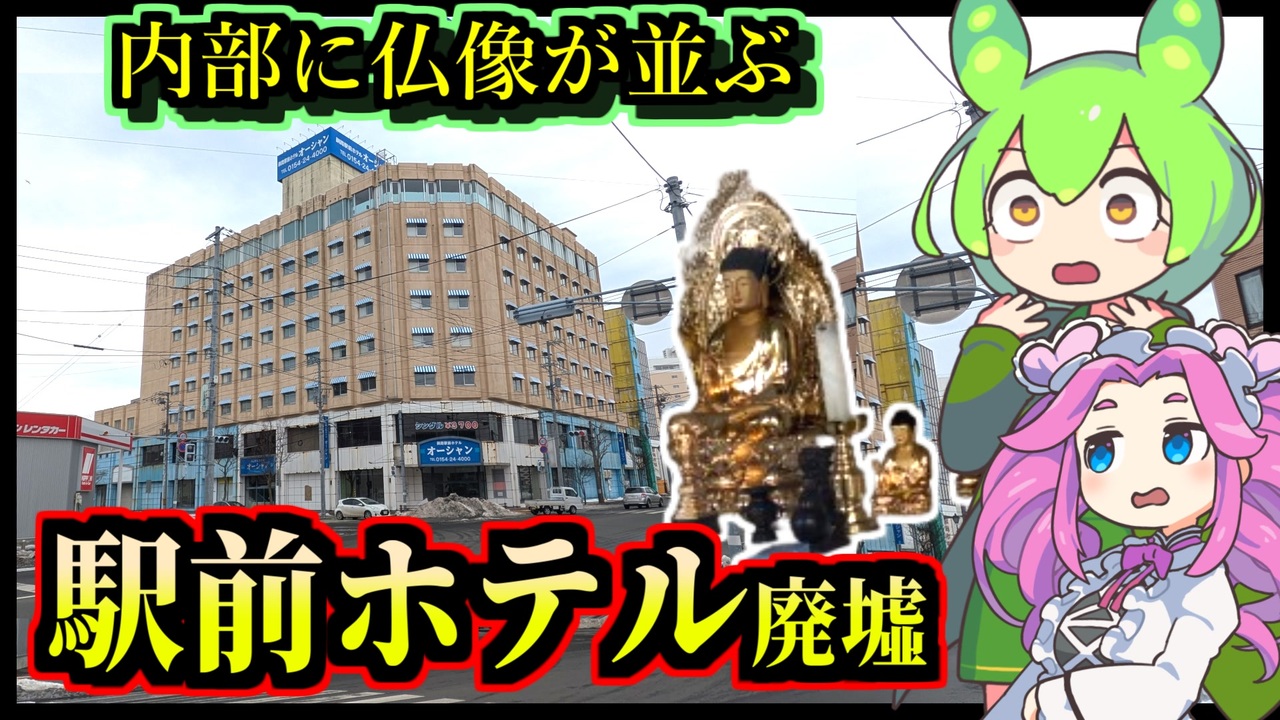 釧路のずんだもんによる 釧路の廃墟スポット探索です<br><br>今回は釧路駅前にある廃墟ホテルを紹介<br><br>かつて複合商業施設としてオープンし<br>エンタメ発信地として人気になるも<br>その後閉店し 宗教法人が買収 ホテルとして再オープンした建物です<br><br><br><br>●音声ソフト<br>VOICEVOX:ずんだもん<br>VOICEVOX:四国めたん<br><br><br>●X<br>@acerola_vitamin<br>●ブルースカイ<br>@pighimarimo.bsky.social<br /><span style="color: #ff0000; font-size: 24px;"><strong>釧路を紹介するブログ始めました</strong></span>:<a href="https://946de2100.com" target="_blank" rel="noopener nofollow">https://946de2100.com</a><br><br><span style="color: #ff0000; font-size: 16px;"><strong>●おススメ動画:</strong></span><span style="color: #ff0000; font-size: 18px;"><strong>【歴史解説】かつて 釧路を支配していたのは佐賀だった ~釧路元町の始まりと佐野孫右衛門の盛衰~</strong></span><br><br><a href="https://www.nicovideo.jp/watch/sm44267722" class="watch">sm44267722</a><br><br><br><span style="color: #ff0000; font-size: 18px;"><strong>●YouTubeチャンネルも登録よろしくお願いします</strong></span><br><strong>釧路チャンネル <a href="https://www.youtube.com/@znd-kaisetu" target="_blank" rel="noopener nofollow">https://www.youtube.com/@znd-kaisetu</a></strong><br>恋結シラリカソロチャンネル <a href="https://www.youtube.com/@enmusubi-shirarika" target="_blank" rel="noopener nofollow">https://www.youtube.com/@enmusubi-shirarika</a><br><br><br>ほしいものリスト <a href="https://www.amazon.jp/hz/wishlist/ls/2OUUB1JQSRUWG?ref_=wl_share" target="_blank" rel="noopener nofollow">https://www.amazon.jp/hz/wishlist/ls/2OUUB1JQSRUWG?ref_=wl_share</a><br>クリエイターサポート<a href="https://creator-support.nicovideo.jp/registration/116665199" target="_blank" rel="noopener nofollow">https://creator-support.nicovideo.jp/registration/116665199</a>