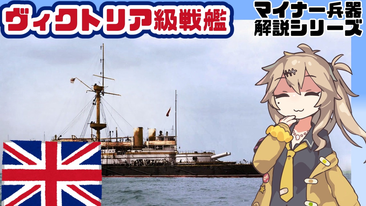 これ以降、ヴィクトリアの名を冠する英国軍艦は居ない(カナダとオーストラリアでは地名由来などでいる)ので、英国海軍で「ヴィクトリア」は忌み名扱いされてると思うぞ。<br><br><a href="https://www.nicovideo.jp/mylist/74547937" target="_blank" rel="noopener">mylist/74547937</a><br>Youtube版→<a href="https://youtu.be/6uuyGaHlx1g" target="_blank" rel="noopener nofollow">https://youtu.be/6uuyGaHlx1g</a><br><br>参考文献(Youtube版はより詳細に書いてる):<br>※動画内にも記載 <br>・英語版Wiki<br>・新見志郎著「軍艦と砲塔」(光人社 2018)<br>・木津 徹編「世界の艦船 1990年11月号増刊 第429集(増刊号第30集) イギリス戦艦史」(海人社 1990年)<br>サイトに関しては全部書こうとしたら600文字オーバーしたので書けない<br>動画内記述とYoutube版の概要欄で確かめてくれ!<br>(普通の解説者は1200文字程度で十分書ききれてるのだろうか?)<br><br>使用素材集<br>BGM:アヒルのテーマ(鋼鉄の咆哮3より)<br>Shape memory alloys<br>I'm A Rockstar-Supergarage<br>背景映像:昭和56年防衛庁記録 <a href="https://youtu.be/_MF8zGUFn_Y" target="_blank" rel="noopener nofollow">https://youtu.be/_MF8zGUFn_Y</a><br>いらすと:いらすとや様 Chat-GPT(イラスト使用時明記)
