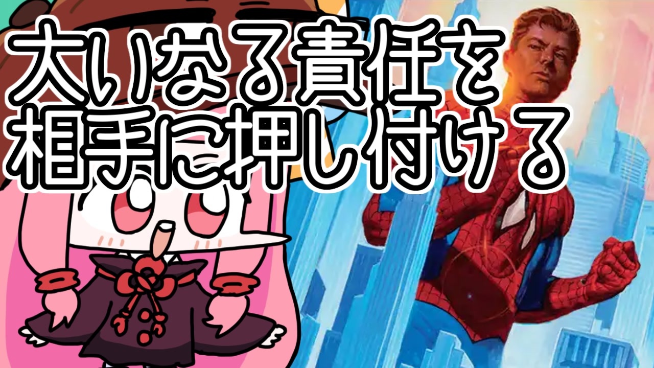 スパイダーマッのクソデッカー茜ちゃん!<br>責任取りたくない<br><br>立ち絵作製:ものch様<br>BGM:shiso<br> 錬金術師の錆びた釜<br><br>マイリスト:<a href="https://www.nicovideo.jp/mylist/70716776" target="_blank" rel="noopener">mylist/70716776</a><br>Twitter:@siki_sikigamin<br><br><br><br><br>Deck<br>4 Chosen by Valgavoth (OM1) 4<br>1 Plains (UNF) 240<br>4 Barbed Servitor (MKM) 77<br>2 Swamp (UNF) 242<br>3 Enduring Innocence (DSK) 6<br>2 Sheltered by Ghosts (DSK) 30<br>2 Cirina Bargainspinner (OM1) 130<br>2 Shardmage's Rescue (DSK) 29<br>1 Lord Skitter, Sewer King (WOE) 97<br>4 Beseech the Mirror (WOE) 82<br>3 Preacher of the Schism (LCI) 113<br>2 Voice of Victory (TDM) 33<br>4 Nowhere to Run (DSK) 111<br>2 Sunspine Lynx (BLB) 155<br>4 Concealed Courtyard (OTJ) 268<br>4 Bleachbone Verge (DFT) 250<br>4 Godless Shrine (RNA) 248<br>3 Shadowy Backstreet (MKM) 268<br>1 Great Arashin City (TDM) 257<br>1 Adagia, Windswept Bastion (EOE) 250<br>1 Dalkovan Encampment (TDM) 253<br>3 The Terminus of Return (OM1) 69<br>3 Starting Town (FIN) 289<br><br><br><br><br><br>ファンコンテンツ・ポリシーに沿った非公式のファンコンテンツです。ウィザーズ社の認可/許諾は得ていません。<br>題材の一部に、ウィザーズ・オブ・ザ・コースト社の財産を含んでいます。©Wizards of the Coast LLC.