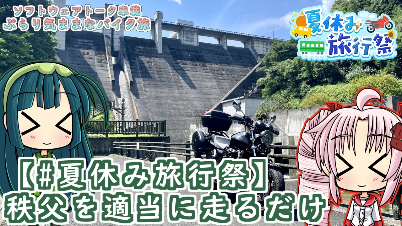 ・告知動画<br>「【開催告知】夏休み旅行祭を開催します!【VOICEROID旅行】」湊(みなと) 様 (<a href="https://www.nicovideo.jp/watch/sm45043741" class="watch">sm45043741</a>)<br><br>・使用ソフト<br>AviUtl (<a href="https://seiga.nicovideo.jp/seiga/im1696493" target="_blank" rel="noopener">im1696493</a>)<br>PSDToolKit<br>VOICEROID2 ついなちゃん<br>VOICEROID+ 東北ずん子 EX<br><br>・乗り物<br>CB1300SF<br><br>・撮影機器<br>GoPro HERO11 Black CHDHX-111-FW<br><br>・立ち絵<br>「藤宮式 ついなちゃん立ち絵」藤宮高津 様 (<a href="https://seiga.nicovideo.jp/seiga/im10834566" target="_blank" rel="noopener">im10834566</a>)<br>「藤宮式ずんちゃん立ち絵」藤宮高津 様 (<a href="https://seiga.nicovideo.jp/seiga/im11091891" target="_blank" rel="noopener">im11091891</a>)<br><br>・BGM<br>「Morning」しゃろう 様 (<a href="https://commons.nicovideo.jp/works/nc98117" target="_blank" rel="noopener">nc98117</a>)<br>「夏色ビードロ」まんぼう二等兵 様 (<a href="https://commons.nicovideo.jp/works/nc142027" target="_blank" rel="noopener">nc142027</a>)<br>「カナリアスキップ」まんぼう二等兵 様 (<a href="https://commons.nicovideo.jp/works/nc163920" target="_blank" rel="noopener">nc163920</a>)<br><br>・その他<br>「夏休み旅行祭 ロゴ」向坂 様 (<a href="https://seiga.nicovideo.jp/seiga/im11620323" target="_blank" rel="noopener">im11620323</a>)<br><br>OP&シーンチェンジ<br><br>・乗り物<br>クロスカブ50<br><br>・立ち絵<br>「琴葉姉妹の立ち絵素材」ユメのオワリ 様<br>「鳴花ヒメ【簡易立ち絵付き】」桧野 拓海 様<br>「鳴花ミコト」桧野 拓海 様<br>「東北きりたん座り絵素材」ユメのオワリ 様<br>「【サウナ動画投稿祭】音街ウナちゃん立ち絵素材」ユメのオワリ 様<br>「【素材】ゆかマキ制服立ち絵」からい 様<br>「紲星あかり立ち絵」からい 様<br>「ついなちゃん立ち絵素材私服セット」こーすけさんたまりあ 様<br>「東北ずん子さん立ち絵素材ver3.0」MtU 様<br>「さとうささらさん立ち絵素材」MtU 様<br>「すずきつづみさん立ち絵素材」MtU 様<br>「IAさん立ち絵素材」MtU 様<br>「OИEさん立ち絵素材」MtU 様<br>「双葉湊音の立ち絵素材」ユメのオワリ 様<br>「花隈千冬立ち絵素材」ユメのオワリ 様<br>「紡乃世詩音立ち絵素材集_2025」ユメのオワリ 様<br>「【素材】宮舞モカ立ち絵」からい 様<br>「ほんわかフィーちゃん立ち絵素材」いかるが 様<br>「口のないSDついなちゃん立ち絵素材」空どうふ 様<br>「口のない東北長女次女立ち絵素材」空どうふ 様<br><br>・BGM<br>「Pero-Pero-Poppin’ Candy」まんぼう二等兵 様<br>「さんさん日和」まんぼう二等兵 様
