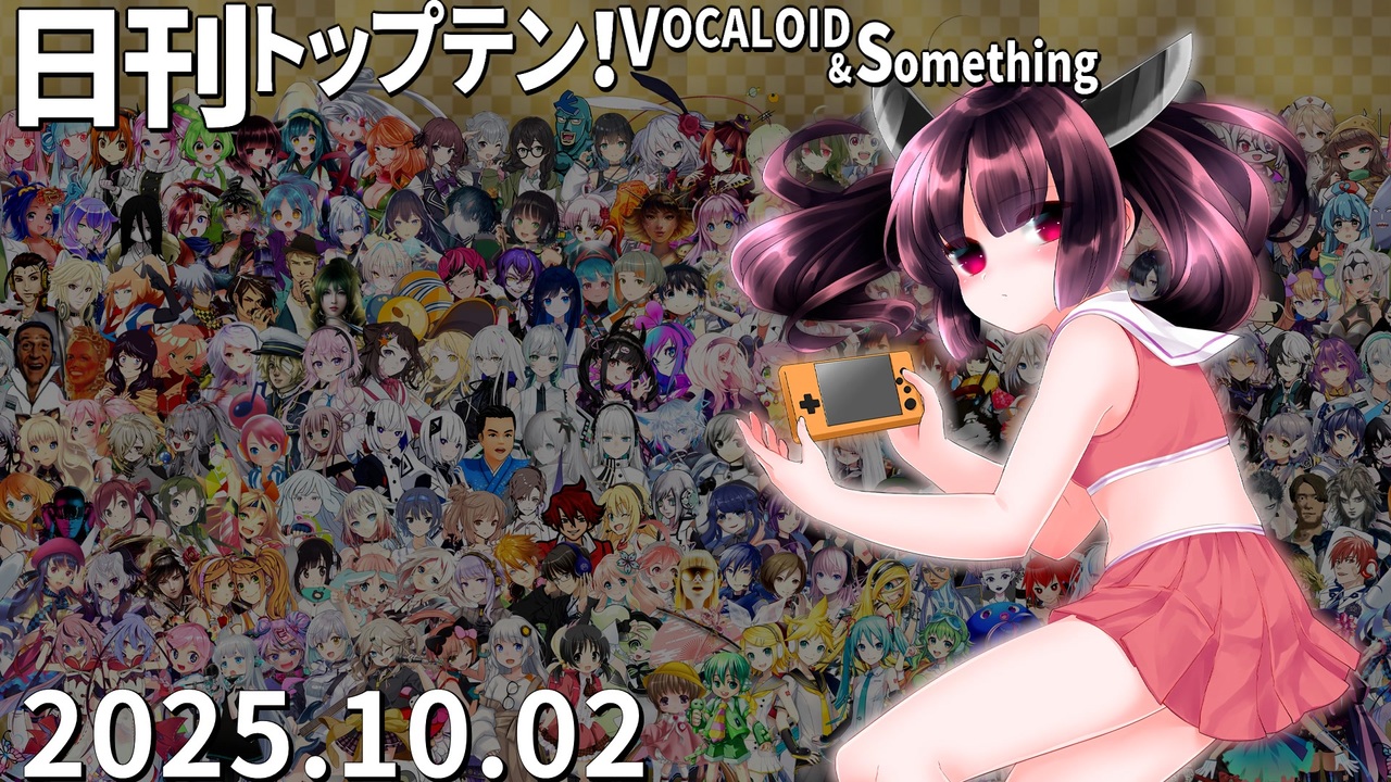 前日(10/1)←<a href="https://www.nicovideo.jp/watch/sm45519734" class="watch">sm45519734</a> <a href="https://www.nicovideo.jp/watch/sm45524269" class="watch">sm45524269</a>→翌日(10/3)<br>★毎号のTOP3をXでまとめて確認できます!<a href="https://tinyurl.com/4sur67rb" target="_blank" rel="noopener nofollow">https://tinyurl.com/4sur67rb</a><br><br>★チャプター<br>昨日1位<a href="#" class="seekTime" data-seekTime="0:00" onclick="seekNicoPlayer('#0:00'); return false;">#0:00</a> TOP10<a href="#" class="seekTime" data-seekTime="0:36" onclick="seekNicoPlayer('#0:36'); return false;">#0:36</a> 1年前<a href="#" class="seekTime" data-seekTime="2:56" onclick="seekNicoPlayer('#2:56'); return false;">#2:56</a> TOP3<a href="#" class="seekTime" data-seekTime="3:24" onclick="seekNicoPlayer('#3:24'); return false;">#3:24</a> 10年前<a href="#" class="seekTime" data-seekTime="4:55" onclick="seekNicoPlayer('#4:55'); return false;">#4:55</a> PICKUP<a href="#" class="seekTime" data-seekTime="5:23" onclick="seekNicoPlayer('#5:23'); return false;">#5:23</a> <br><br>★トップテン<br>10:<a href="https://www.nicovideo.jp/watch/sm45440571" class="watch">sm45440571</a> 9:<a href="https://www.nicovideo.jp/watch/sm45460959" class="watch">sm45460959</a> 8:<a href="https://www.nicovideo.jp/watch/sm45456403" class="watch">sm45456403</a> 7:<a href="https://www.nicovideo.jp/watch/sm45463454" class="watch">sm45463454</a> <br>6:<a href="https://www.nicovideo.jp/watch/sm45463289" class="watch">sm45463289</a> 5:<a href="https://www.nicovideo.jp/watch/sm45464351" class="watch">sm45464351</a> 4:<a href="https://www.nicovideo.jp/watch/sm45463920" class="watch">sm45463920</a> 3:<a href="https://www.nicovideo.jp/watch/sm45464603" class="watch">sm45464603</a> 2:<a href="https://www.nicovideo.jp/watch/sm45465056" class="watch">sm45465056</a> 1:<a href="https://www.nicovideo.jp/watch/sm45460905" class="watch">sm45460905</a> <br><br>★ピックアップ(B~Dは超新着枠)<br>B:<a href="https://www.nicovideo.jp/watch/sm45468092" class="watch">sm45468092</a> C:<a href="https://www.nicovideo.jp/watch/sm45435058" class="watch">sm45435058</a> D:<a href="https://www.nicovideo.jp/watch/sm45466489" class="watch">sm45466489</a> E:<a href="https://www.nicovideo.jp/watch/sm45442199" class="watch">sm45442199</a> F:<a href="https://www.nicovideo.jp/watch/sm45442745" class="watch">sm45442745</a> G:<a href="https://www.nicovideo.jp/watch/sm45389806" class="watch">sm45389806</a> <br>H:<a href="https://www.nicovideo.jp/watch/sm45456033" class="watch">sm45456033</a> I:<a href="https://www.nicovideo.jp/watch/sm45457420" class="watch">sm45457420</a> J:<a href="https://www.nicovideo.jp/watch/sm45446818" class="watch">sm45446818</a> K:<a href="https://www.nicovideo.jp/watch/sm45431969" class="watch">sm45431969</a> L:<a href="https://www.nicovideo.jp/watch/sm45440792" class="watch">sm45440792</a> M:<a href="https://www.nicovideo.jp/watch/sm45441251" class="watch">sm45441251</a> <br><br>★プレイバック <br>A(1年前):<a href="https://www.nicovideo.jp/watch/sm44170733" class="watch">sm44170733</a> 十(10年前):<a href="https://www.nicovideo.jp/watch/sm27279517" class="watch">sm27279517</a> 前日の第1位: <a href="https://www.nicovideo.jp/watch/sm45461625" class="watch">sm45461625</a>(東北きりたん)<br><br>☆集計対象:2025/9/25~10/2 5時投稿の作品(10/2 5時集計)<br>★計算式:再生×1+コメント×最大12+いいね!×13+マイリスト×12<br>☆プレイリスト:<u><a href="https://nikkantop10.hatenablog.com/entry/ar20251002" target="_blank" rel="noopener nofollow">https://nikkantop10.hatenablog.com/entry/ar20251002</a></u> 、 <a href="https://www.nicovideo.jp/mylist/49271984" target="_blank" rel="noopener">mylist/49271984</a> <br>★1年前トップテン:<a href="https://www.nicovideo.jp/watch/sm44175260" class="watch">sm44175260</a><br />★日刊トップテン動画一覧マイリスト:<a href="https://www.nicovideo.jp/mylist/47849908" target="_blank" rel="noopener">mylist/47849908</a><br>☆ルールや計算式の詳細:<a href="https://nikkantop10-sub.hatenablog.com/entry/top10_rule" target="_blank" rel="noopener nofollow">https://nikkantop10-sub.hatenablog.com/entry/top10_rule</a><br><span style="color: #262626;">★K!!te Playlist LINK!:<a href="https://kiite.jp/user/AIST_playlist_bot" target="_blank" rel="noopener nofollow">https://kiite.jp/user/AIST_playlist_bot</a><br>☆Twitter:<a href="https://twitter.com/VOCALO_NEWRANK" target="_blank" rel="noopener nofollow">https://twitter.com/VOCALO_NEWRANK</a><br>★Thread:<a href="https://www.threads.net/@lukanan_p" target="_blank" rel="noopener nofollow">https://www.threads.net/@lukanan_p</a></span><br><br><span style="color: #0000ff;"><strong>◆今後の動画投稿イベント情報</strong></span><br>2025/12/29~31 <strong>先端映像音楽表現投稿祭</strong> <a href="https://twipla.jp/events/678401" target="_blank" rel="noopener nofollow">https://twipla.jp/events/678401</a><br>2026/1/1~4 <strong>ボカロサビ投稿祭2026 </strong><a href="https://twipla.jp/events/705936" target="_blank" rel="noopener nofollow">https://twipla.jp/events/705936</a> ※既存曲は新規投稿で参加可<br>2026/1/10~12 <strong>ポストロック投稿祭 </strong><a href="https://twipla.jp/events/694939" target="_blank" rel="noopener nofollow">https://twipla.jp/events/694939</a>
