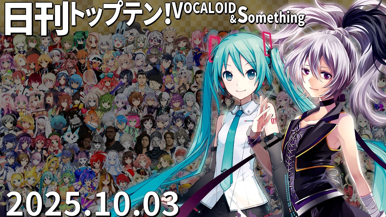 前日(10/2)←<a href="https://www.nicovideo.jp/watch/sm45523581" class="watch">sm45523581</a> <a href="https://www.nicovideo.jp/watch/sm45524721" class="watch">sm45524721</a>→翌日(10/4)※10/17 7時公開<br><br>★ボカコレルーキー対象期間(2024年2月19日)以降で初紹介となる投稿者には「★NEW COMER!!★」マークを表記します。<br><br>★チャプター<br>昨日1位<a href="#" class="seekTime" data-seekTime="0:00" onclick="seekNicoPlayer('#0:00'); return false;">#0:00</a> TOP10<a href="#" class="seekTime" data-seekTime="0:36" onclick="seekNicoPlayer('#0:36'); return false;">#0:36</a> 1年前<a href="#" class="seekTime" data-seekTime="2:56" onclick="seekNicoPlayer('#2:56'); return false;">#2:56</a> TOP3<a href="#" class="seekTime" data-seekTime="3:24" onclick="seekNicoPlayer('#3:24'); return false;">#3:24</a> 10年前<a href="#" class="seekTime" data-seekTime="4:56" onclick="seekNicoPlayer('#4:56'); return false;">#4:56</a> PICKUP<a href="#" class="seekTime" data-seekTime="5:24" onclick="seekNicoPlayer('#5:24'); return false;">#5:24</a> <br><br>★トップテン<br>10:<a href="https://www.nicovideo.jp/watch/sm45454964" class="watch">sm45454964</a> 9:<a href="https://www.nicovideo.jp/watch/sm45452612" class="watch">sm45452612</a> 8:<a href="https://www.nicovideo.jp/watch/sm45446329" class="watch">sm45446329</a> 7:<a href="https://www.nicovideo.jp/watch/sm45442745" class="watch">sm45442745</a> <br>6:<a href="https://www.nicovideo.jp/watch/sm45447086" class="watch">sm45447086</a> 5:<a href="https://www.nicovideo.jp/watch/sm45444845" class="watch">sm45444845</a> 4:<a href="https://www.nicovideo.jp/watch/sm45461319" class="watch">sm45461319</a> 3:<a href="https://www.nicovideo.jp/watch/sm45450049" class="watch">sm45450049</a> 2:<a href="https://www.nicovideo.jp/watch/sm45468092" class="watch">sm45468092</a> 1:<a href="https://www.nicovideo.jp/watch/sm45438933" class="watch">sm45438933</a> <br><br>★ピックアップ(B~Dは超新着枠)<br>B:<a href="https://www.nicovideo.jp/watch/sm45467769" class="watch">sm45467769</a> C:<a href="https://www.nicovideo.jp/watch/sm45470780" class="watch">sm45470780</a> D:<a href="https://www.nicovideo.jp/watch/sm45470554" class="watch">sm45470554</a> E:<a href="https://www.nicovideo.jp/watch/sm45436130" class="watch">sm45436130</a> F:<a href="https://www.nicovideo.jp/watch/sm45452734" class="watch">sm45452734</a> G:<a href="https://www.nicovideo.jp/watch/sm45446810" class="watch">sm45446810</a> <br><br><br>★プレイバック <br>A(1年前):<a href="https://www.nicovideo.jp/watch/sm44172719" class="watch">sm44172719</a> 十(10年前):<a href="https://www.nicovideo.jp/watch/sm27287058" class="watch">sm27287058</a> 前日の第1位: <a href="https://www.nicovideo.jp/watch/sm45460905" class="watch">sm45460905</a>(初音ミク・flower)<br><br>☆集計対象:2025/9/26~10/3 5時投稿の作品(10/3 5時集計)<br>★計算式:再生×1+コメント×最大12+いいね!×15+マイリスト×12<br>☆プレイリスト:<u><a href="https://nikkantop10.hatenablog.com/entry/ar20251003" target="_blank" rel="noopener nofollow">https://nikkantop10.hatenablog.com/entry/ar20251003</a></u> 、 <a href="https://www.nicovideo.jp/mylist/49271984" target="_blank" rel="noopener">mylist/49271984</a> <br>★1年前トップテン:<a href="https://www.nicovideo.jp/watch/sm44178208" class="watch">sm44178208</a>