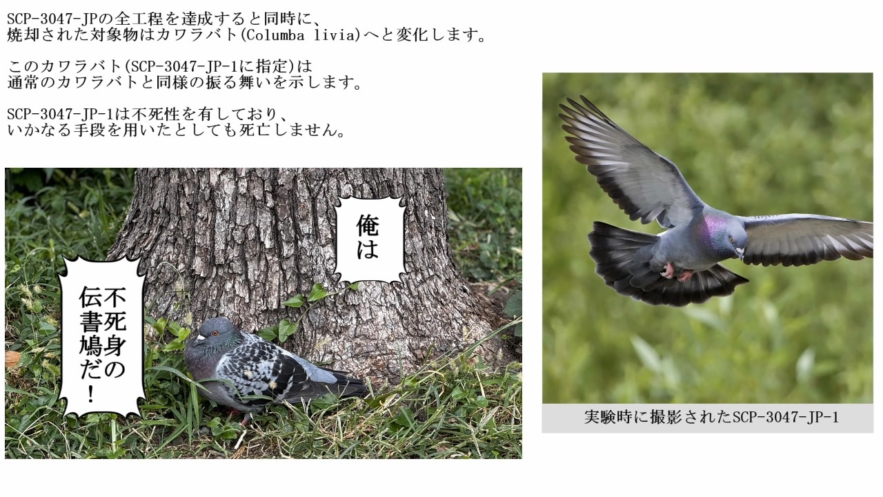 タイトル: SCP-3047-JP - もしも私が鳥ならば、<br>あなたのもとへ飛んでいくのに<br>作者: terukami<br>ソース: <a href="http://scp-jp.wikidot.com/scp-3047-jp" target="_blank" rel="noopener nofollow">http://scp-jp.wikidot.com/scp-3047-jp</a><br>ライセンス: CC BY-SA 3.0<br><br><br>近況:<br><br>結局 新作ポケモンの発売までに<br>バナンザのクリア 間に合いませんでした!<br><br><br><br><span style="color: #000000; font-size: 14px;"><strong>夜鷹が鳴く頃に 見て欲しいもの入れ(創作物)</strong></span><br><span style="color: #006699; font-size: 14px;"><a href="https://www.nicovideo.jp/mylist/66904506" target="_blank" rel="noopener">mylist/66904506</a></span><br><span style="color: #000000; font-size: 14px;">(SCPシリーズ他まとめ)</span><br><br>youtubeアカウント<br><a href="https://www.youtube.com/@user-yq7os2gt6b" target="_blank" rel="noopener nofollow">https://www.youtube.com/@user-yq7os2gt6b</a><br><br>ウマ娘トレーナーID / 474456856<br><br>X / @MTzLFGalKimIJAZ