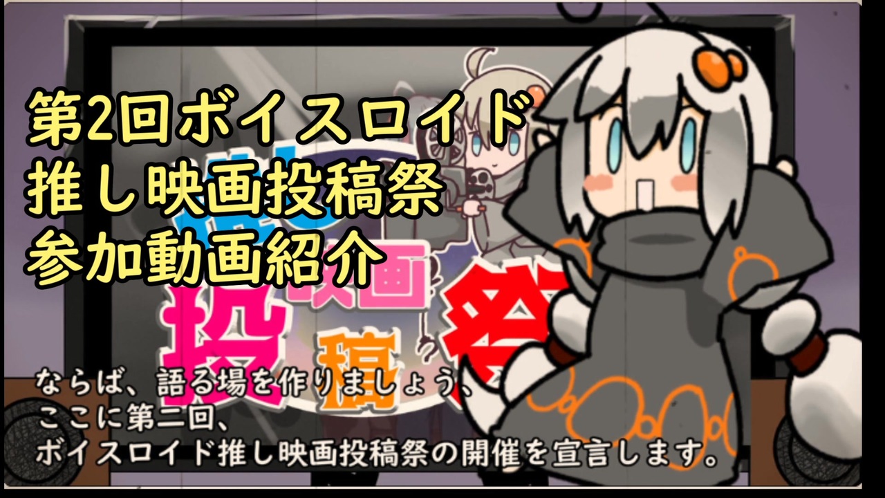 規格に参加していただいた動画を紹介しています。<br>ココの作品はこちらから<br> <a href="https://www.nicovideo.jp/mylist/78556853" target="_blank" rel="noopener nofollow">https://www.nicovideo.jp/mylist/78556853</a><br><br>第3回もいつか、そのうち、きっとめいびー<br><br>お借りしたもの<br>電灯さん様 <br> M八七 弾いてみた【シン・ウルトラマン】/<a href="https://www.nicovideo.jp/watch/sm40485078" class="watch">sm40485078</a><br>GYARI(ココアシガレットP)様 <br> 何でも言うことを聞いてくれるアカネチャン【オフボーカル版】<a href="https://commons.nicovideo.jp/works/nc171583" target="_blank" rel="noopener">nc171583</a><br>@_@様<br>セピア調フィルムノイズ <a href="https://commons.nicovideo.jp/works/nc4103" target="_blank" rel="noopener">nc4103</a><br><br>ひらあらさみ様 ひらあさみ - ニコニコ <a href="https://www.nicovideo.jp/user/34040287" target="_blank" rel="noopener nofollow">https://www.nicovideo.jp/user/34040287</a><br>ロゴと背景 @thistleiris03<br><br><br><br><span style="font-size: 24px;"><strong>第2回ボイスロイド 推し映画投稿祭</strong></span><br><br>投稿機関<br>10月6日から10月13日 翌日 10月14日21時から視聴会を予定しています。<br><br>参加放送<br>期間中にタグ 第2回ボイスロイド推し映画投稿祭 とタグを付けて投稿<br>出来たら、Xでも告知してくれるとありがたい。<br><br>レギュレーション<br>・合成音声ソフトを使うこと<br>・1分から5分程度の動画<br>・センシティブなものはさける、または濁らせる<br>・映画のネタバレをする場合は 説明文と冒頭で1文いれること。<br> <br> <br>見た人がこの映画、見たいってなるような動画を募集します。<br><br><span style="font-size: 18px;">他のおしゃべり⇒<a href="https://www.nicovideo.jp/mylist/63340764" target="_blank" rel="noopener">mylist/63340764</a></span><br><br><span style="font-size: 18px;">映画紹介 <a href="https://www.nicovideo.jp/mylist/77351291" target="_blank" rel="noopener">mylist/77351291</a></span><br><br><span style="font-size: 18px;">ゲーム語り <a href="https://www.nicovideo.jp/mylist/78084235" target="_blank" rel="noopener">mylist/78084235</a></span><br><br><br><br><br>