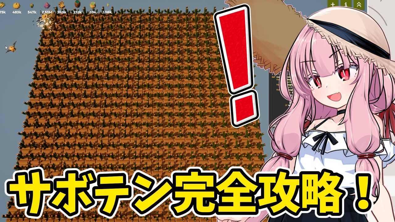 プログラムで農業を自動化するゲームの実況プレイ<br>茜「サボテン栽培は強敵やったで…」<br><br>お借りした素材:琴葉茜 立ち絵素材 ぴぴ様<br><br>農家は Replace() されました/The Farmer Was Replaced<br><a href="https://store.steampowered.com/app/2060160/_Replace/" target="_blank" rel="noopener nofollow">https://store.steampowered.com/app/2060160/_Replace/</a><br><br /><br>part1リスト:<a href="https://www.nicovideo.jp/mylist/78860190" target="_blank" rel="noopener">mylist/78860190</a><br><br>twitter:<a href="https://twitter.com/nanamomo107" target="_blank" rel="noopener nofollow">https://twitter.com/nanamomo107</a><br><br><a target="_blank" href="https://qa.nicovideo.jp/faq/show/19424?site_domain=default" style="font-size: 13px;color: #657586; text-decoration: underline; line-height: 1.4">この動画は投稿者によって修正されました</a>