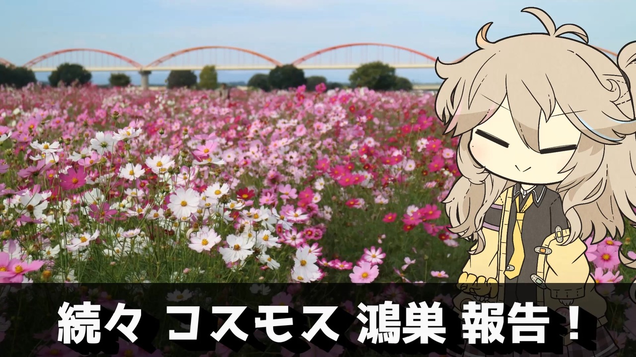 2025年10月18日(土) 前から一度行ってみたかった埼玉県鴻巣市の荒川河川敷に秋桜を見に訪れた模様です。<br><br>興奮をいち早くお伝えしたかったのと、今投稿すれば来週10月25日(土)26日(日)開催の鴻巣コスモスフェスティバルに間に合う人もいるかもということで、今日訪れた場所、今日投稿です。<br><br>鴻巣、秋桜でいける!と思ったものの似ている言葉案外なく苦戦・・・<br><br>◆BGMは以下を使用させていただきました。有難うございます。<br><文明開化> 騒音のない世界様<br><a href="https://www.nicovideo.jp/watch/sm39831537" target="_blank" rel="noopener nofollow">https://www.nicovideo.jp/watch/sm39831537</a><br><br>◆イラストは以下を使用させていただきました。有難うございます。<br><立ち春日部つむぎ素材> akihiyo様<br><a href="https://seiga.nicovideo.jp/seiga/im11010935" target="_blank" rel="noopener nofollow">https://seiga.nicovideo.jp/seiga/im11010935</a><br><br>◆音声合成ソフトは以下を使用させていただきました。有難うございます。<br> VOICEVOX 春日部つむぎ