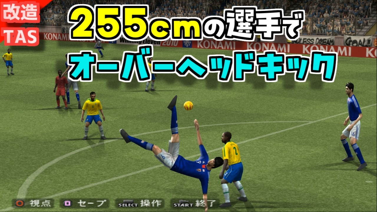 今回の動画は、ウイイレを限界まで改造!日本代表に身長255cmという規格外の選手を投入しました。<br>相手はサッカー王国ブラジル!しかし、規格外のパワーでブラジルを圧倒。<br>誰も予想できなかった驚愕の結末...歴史に残る激闘をぜひご覧ください!<br><br>なお、この動画はツールアシスト(エミュレータ上でプレイし、どこでもセーブ、スローモーション機能などを利用)して作成されています。<br><br>・その他のおすすめ動画<br>【改造ウイイレ】当たれば転ぶマリーシアカップ決勝→<a href="https://www.nicovideo.jp/watch/sm41680868" class="watch">sm41680868</a><br>【改造ウイイレ】ウイイレのジャンプ力を検証【イカサマイレブン】→<a href="https://www.nicovideo.jp/watch/sm41712035" class="watch">sm41712035</a><br>【改造ウイイレ】日本VSアメリカ お相撲さんワールドカップ決勝→<a href="https://www.nicovideo.jp/watch/sm41779491" class="watch">sm41779491</a><br>キリンカップ決勝 中国VS北朝鮮 【改造ウイイレ】→<a href="https://www.nicovideo.jp/watch/sm41813208" class="watch">sm41813208</a><br>ウイイレでネットを突き破るには時速何キロ必要?【TAS】→<a href="https://www.nicovideo.jp/watch/sm41848503" class="watch">sm41848503</a><br><br><br />動画に「いいね!」「マイリスト登録」よろしくお願いします。<br><br>・おすすめ<br>[TAS]Grand Theft Auto 3 Part1→<a href="https://www.nicovideo.jp/watch/sm14718961" class="watch">sm14718961</a><br>[TAS]MaxPayne デッドターゲット Part1→<a href="https://www.nicovideo.jp/watch/sm15093299" class="watch">sm15093299</a><br>[TAS]michigan Part1→<a href="https://www.nicovideo.jp/watch/sm18393230" class="watch">sm18393230</a><br><br>サポート頂けると励みになります<br>魔界塔士のサポーターになる→<a href="https://creator-support.nicovideo.jp/registration/15153622" target="_blank" rel="noopener nofollow">https://creator-support.nicovideo.jp/registration/15153622</a><br><br>TAS動画まとめ→<a href="https://koeiprogenitor.com/tas/matome/" target="_blank" rel="noopener nofollow">https://koeiprogenitor.com/tas/matome/</a><br>つべ→<a href="https://www.youtube.com/user/koeiprogenitor1/" target="_blank" rel="noopener nofollow">https://www.youtube.com/user/koeiprogenitor1/</a><br>インスタ→<a href="https://www.instagram.com/makaitoshi" target="_blank" rel="noopener nofollow">https://www.instagram.com/makaitoshi</a><br><br>本編→シリーズ一覧見てね<br>