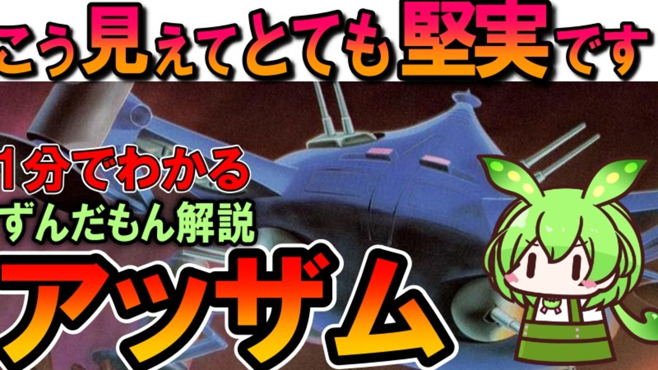 この動画は、You Tubeのショート動画にサムネをつけて内容はそのまま転載したものです。<br>いいねに次回予告的なものも。<br><br>技術不足でも様々な代用でとりあえず形にできたのは立派だと思いました<br>最初から何もかも完璧にするのは無理でも、あるものを使うのは大切なことかなと<br><br>【結局これは何なの?】アッザムの性能や活躍、重要な立ち位置などを徹底解説【機動戦士ガンダム】<br><a href="https://www.nicovideo.jp/watch/sm45527495" target="_blank" rel="noopener nofollow">https://www.nicovideo.jp/watch/sm45527495</a><br><br>質問、などありましたらこちらにも<br><a href="https://twitter.com/@i4S0LHspdgzBTor" target="_blank" rel="noopener nofollow">https://twitter.com/@i4S0LHspdgzBTor</a><br><br>清見元康名義でカクヨムなどに小説を投稿しています! 面白ければブクマ、あるいは厳し目の評価など貰えると嬉しいです。<br>死に戻り34回目、もう疲れたので私アイドルになります!<br>※初期コンセプトは死に戻ったガルマがシャアを救うにはどうしたら良いのか的な物語を全部女の子でやった感じです。<br><a href="https://kakuyomu.jp/works/16817330662598051943" target="_blank" rel="noopener nofollow">https://kakuyomu.jp/works/16817330662598051943</a><br><br>以前の作品(短編シリアス):<br>転生した厄災の大魔女はやがて聖女と呼ばれる<br><a href="https://ncode.syosetu.com/n0827ha/" target="_blank" rel="noopener nofollow">https://ncode.syosetu.com/n0827ha/</a><br><br>VOICEVOX:ずんだもん<br><br>使用させていただいたずんだもん:<br>ずんだもん mini Deluxe(立ち絵) ver1.2<br><a href="https://seiga.nicovideo.jp/seiga/im10794509" target="_blank" rel="noopener nofollow">https://seiga.nicovideo.jp/seiga/im10794509</a><br><br>いつも広告、コメントありがとうございます。<br>励みになりますm(_ _)m<br>