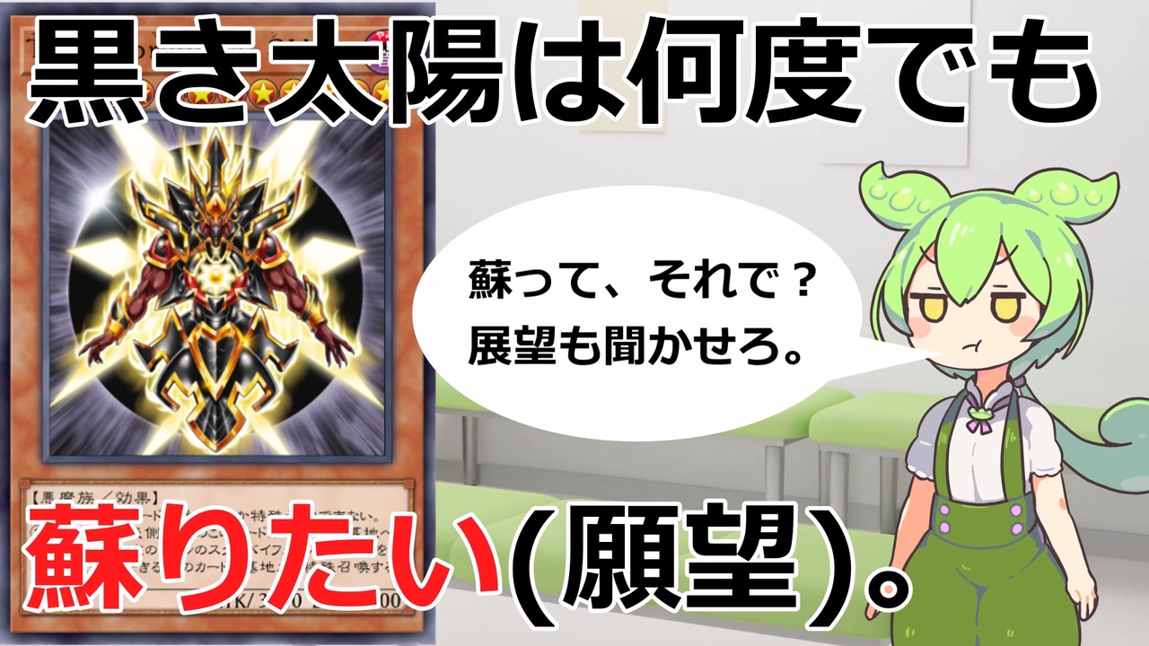 皆さんこんにちは。ごぶりんライダーと申します。<br>今回は、前回最後に取ったアンケートで選ばれた①枠の最上級悪魔族さんです。<br>わたしの構築まとめぢからではこれが限界でした。が、昔のカードを組み合わせてバカなことしようとするのは楽しかったです。<br>皆さんにも楽しんでいただけたら幸いです。<br><br>撮影にご協力いただきました!ありがとうございました!<br>Lemoさん→<a href="https://www.nicovideo.jp/user/4371686" target="_blank" rel="noopener nofollow">https://www.nicovideo.jp/user/4371686</a><br>綾霧さん→<a href="https://www.nicovideo.jp/user/14801650" target="_blank" rel="noopener nofollow">https://www.nicovideo.jp/user/14801650</a><br><br>前回動画を広告してくださった皆様:ばんてふさん、譲葉にりさん、Precisさん、壁に目ありさん、harokenさん、燈篭さん、のーばれっとさん、越冬星さん、コモズンさん、maziさん、らうすけさん、二式内火艇@エンジョイ勢さん<br>ありがとうございます!<br><br>本家様:<a href="https://www.nicovideo.jp/user/82678858/series/321504" target="_blank" rel="noopener nofollow">https://www.nicovideo.jp/user/82678858/series/321504</a><br><br>使用音源:ニコニ・コモンズ、効果音ラボ<br>VOICEVOX:ずんだもん、春日部つむぎ<br>使用楽曲:休み時間の過ごし方、まずはここから、Pop_swing、大逆転から勝利へと繋がるBGM「奪還のヴェルデ」