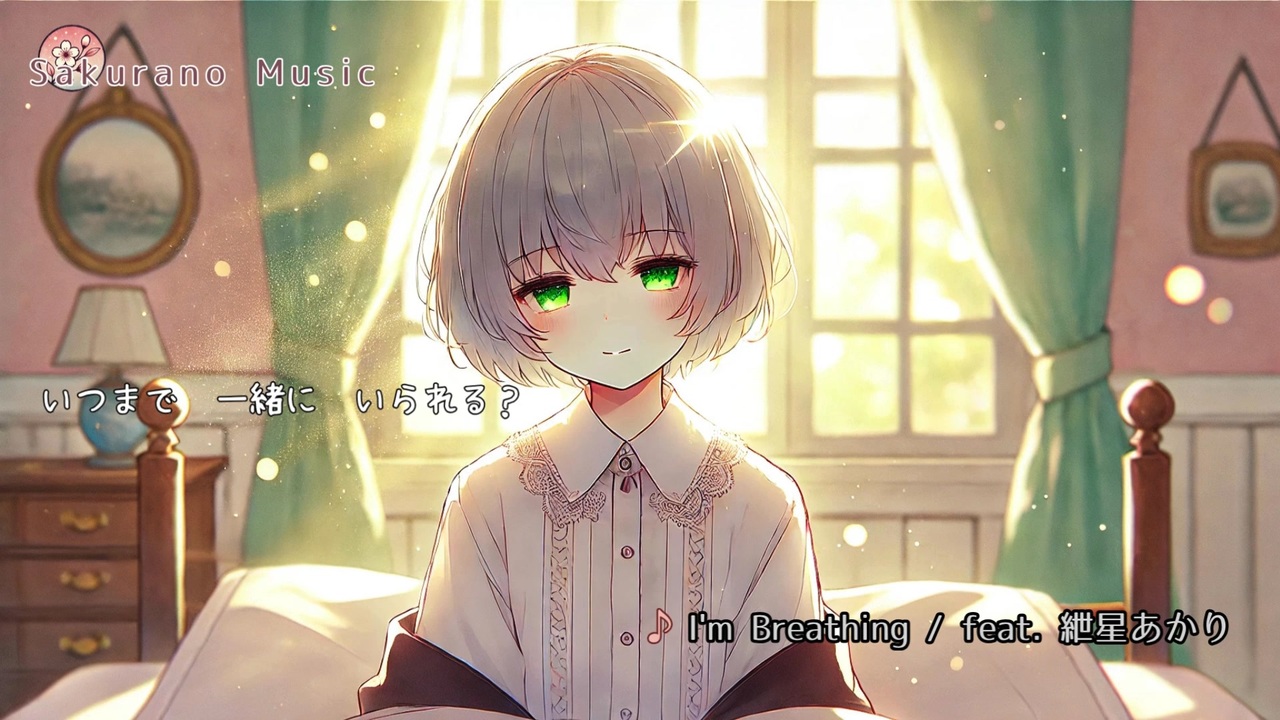 🎒 I'm Breathing / さくらのえり / feat. 紲星あかり 🎒<br>ボカロオリジナル曲 / Lyrics & Music: さくらの えり<br><br>大好きな紲星あかりちゃんに「こてこてのギターロック」を歌い上げてもらいました。<br>ラストサビは高いキーだけど、かっこよく「I love you!」を決めてくれます⚡<br><br>📢 応援(高評価・コメント・チャンネル登録)いただけると次の制作の力になります!<br>SNSでの共有もとても励みになります🙌<br><br>📝歌詞<br>Aメロ<br>いつもの 朝が 来てた when I'm waking up<br>君の 寝顔 みつめて I was breaking down<br>まぶしい 光が さした I'm still in love<br>何気ない 季節の 歌を<br><br>サビ<br>I'm breathing...<br>I'm breathing... ya ya ya<br>寝ぼけた頬 さすって<br>世界がはじけた 君と<br>キスした3秒 just breathing...<br><br>Aメロ<br>ケンカをした あとの without a word to say<br>愛想のない フリも I know what you mean<br>全部 わかっていたね You're still in love<br>まるで 息をするように<br><br>サビ<br>You're breathing...<br>You're breathing... ya ya ya<br>こぼれたての 笑顔に<br>世界がはじけた 君と<br>キスした3秒 just breathing...<br><br>ギターソロ<br><br>Aメロ<br>いつまで 一緒に いられる?<br>壊れてしまった けれど<br>そばに いてほしいよ<br>君が好き 息止まっても<br><br>サビ<br>I'm breathing...<br>You're breathing... ya ya ya<br>言葉なく 差し出す 手に<br>世界がはじけた 君と<br>キスする3秒 just...<br><br>サビ<br>I'm breathing...<br>You're breathing... ya ya ya<br>壊れた心 つつむ<br>息が止まっても 君と<br>キスするずっと<br>and I love you... yeah