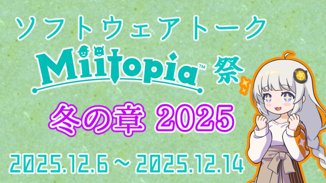 <strong>補足:他投稿祭との掛け持ちOKです!<br>この動画のIDだ、参加作品のコンテンツツリーにコピペしてね→<a href="https://www.nicovideo.jp/watch/sm45535881" class="watch">sm45535881</a></strong><br><br><span style="color: #ff0000; font-size: 18px;"><strong>体験版(もうこれだけでも充分)とか製品版DLできるぞ、買おう!(ダイマ)↓<br><a href="https://store-jp.nintendo.com/item/software/D70010000038616" target="_blank" rel="noopener nofollow">https://store-jp.nintendo.com/item/software/D70010000038616</a></strong></span><br><br>告知動画で書ききれなかったこと書いたブロマガ(今はnoteと呼ぶんだったな)↓<br><a href="https://note.com/64466_txt/n/n04d47654939a?sub_rt=share_sb" target="_blank" rel="noopener nofollow">https://note.com/64466_txt/n/n04d47654939a?sub_rt=share_sb</a><br><br><span style="font-size: 16px;">それとついでに去年開設したミートピア攻略Wikiも宣伝しておく↓</span><br><span style="color: #6aa84f; font-size: 16px;"><a href="https://wikiwiki.jp/koryakutopia/" target="_blank" rel="noopener nofollow">https://wikiwiki.jp/koryakutopia/</a></span><br><strong>使用音声ソフト</strong><br>A.I.VOICE2 紲星あかり<br>CeVIOAI フィーちゃん<br>A.I.VOICE 夜語トバリ<br>A.I.VOICE 紲星あかり<br>A.I.VOICE 結月ゆかり<br><strong>キャスト</strong><br>紲星あかり<br>フィーちゃん<br>夜語トバリ<br>結月ゆかり<br>桜乃そら<br><br><br><br>Miitopiaで遊劇場は楽しいぞ!<br><br /><span style="font-size: 16px;"><strong>ここからは共通説明文</strong></span><br>この動画作った人への連絡先↓<br><a href="https://twitter.com/L3nozzle_noser" target="_blank" rel="noopener nofollow">https://twitter.com/L3nozzle_noser</a><br><br>ようつべ↓<br>メインch・<a href="https://youtube.com/@roshishiloro?si=eKLhAvFA8BCRR6Ht" target="_blank" rel="noopener nofollow">https://youtube.com/@roshishiloro?si=eKLhAvFA8BCRR6Ht</a><br>色々やるサブch・<a href="https://youtube.com/channel/UCfIELItnUYAt-zDX-h4zc9A" target="_blank" rel="noopener nofollow">https://youtube.com/channel/UCfIELItnUYAt-zDX-h4zc9A</a><br><br>↓ぼすきーもやってますよろしくね<br><a href="https://voskey.icalo.net/@Roshishirolo" target="_blank" rel="noopener nofollow">https://voskey.icalo.net/@Roshishirolo</a><br><br><br><a target="_blank" href="https://qa.nicovideo.jp/faq/show/19424?site_domain=default" style="font-size: 13px;color: #657586; text-decoration: underline; line-height: 1.4">この動画は投稿者によって修正されました</a>